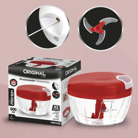 Triturador de Alho Manual 500ml Processador de Alimentos 3 Laminas Cozinha