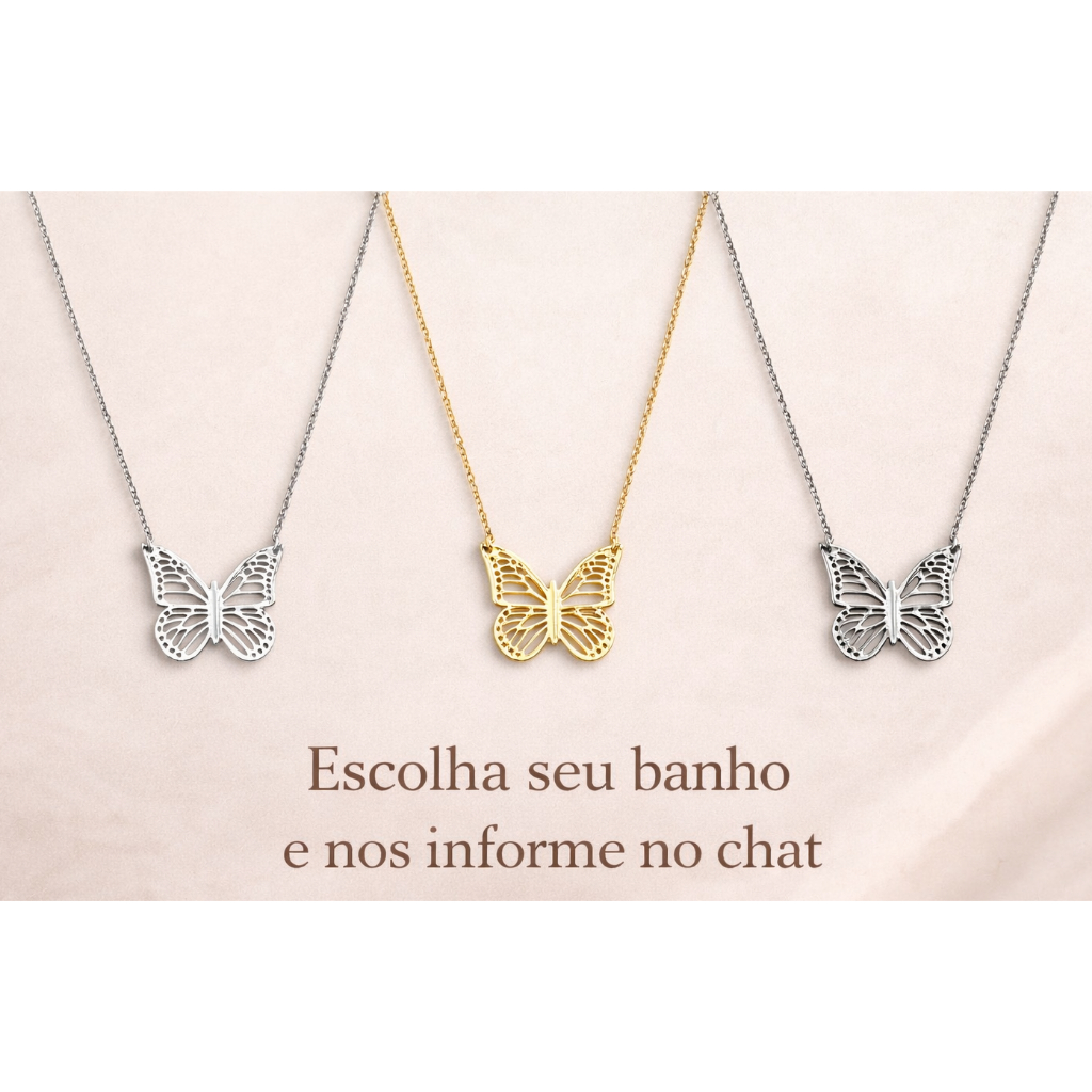 Colar Feminino Borboleta Dourado Prata e Aço Inoxidável Ca&ReOficial Presente Elegante para Mulheres