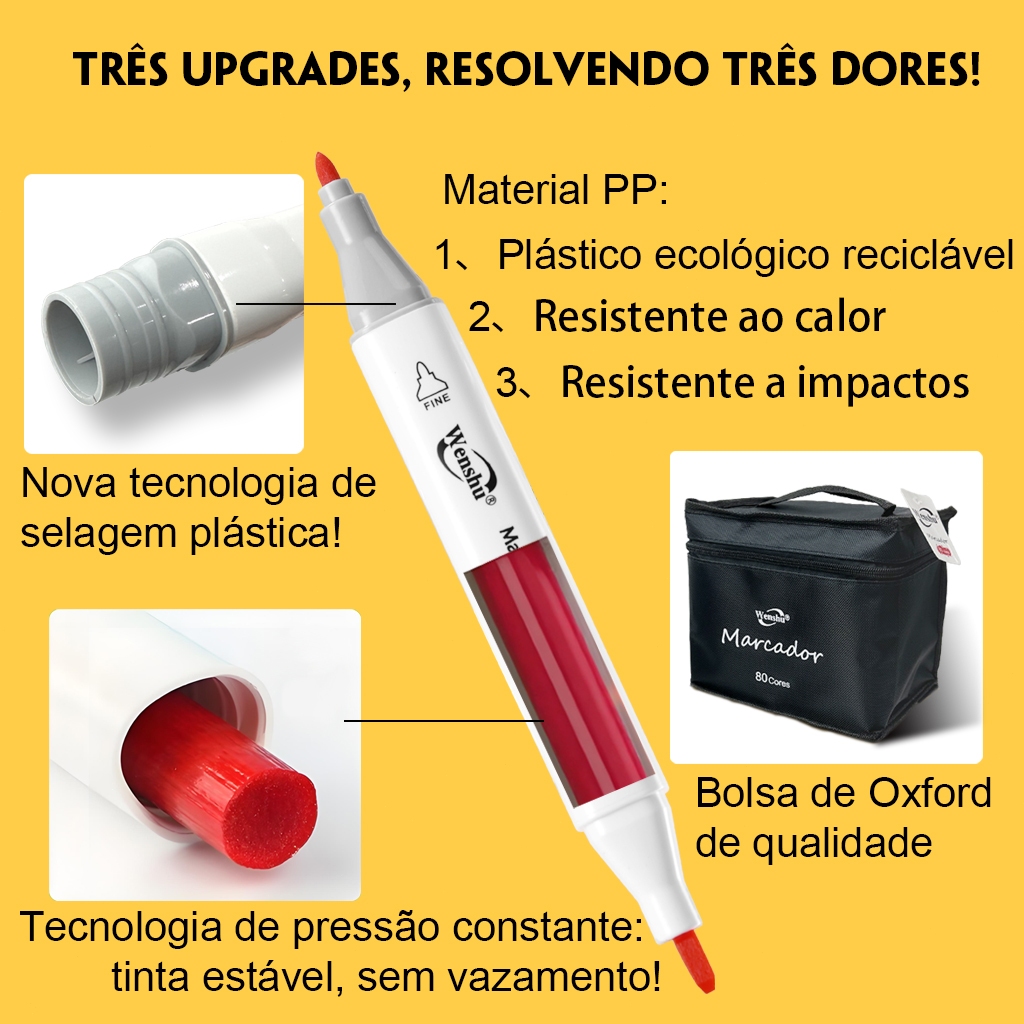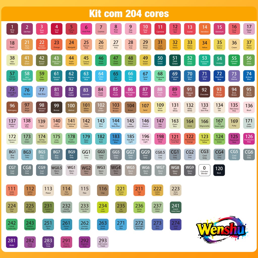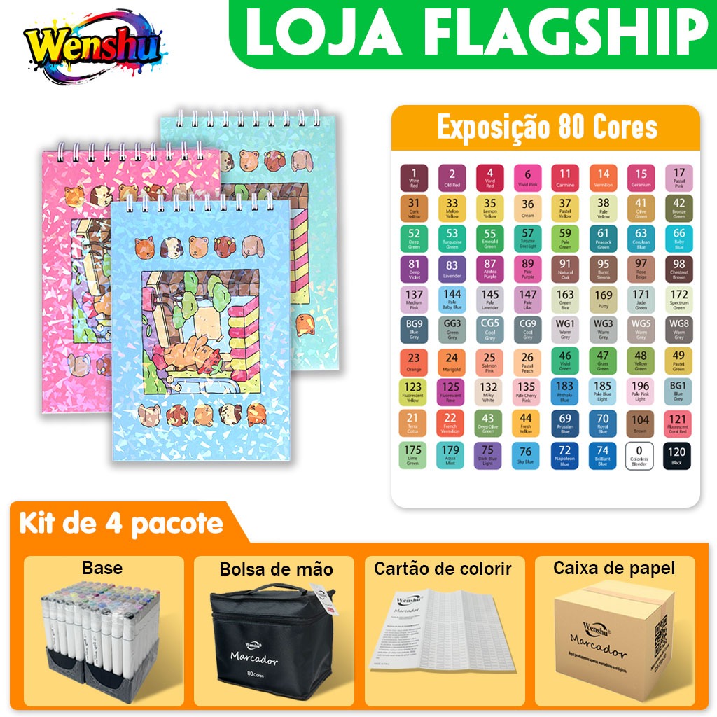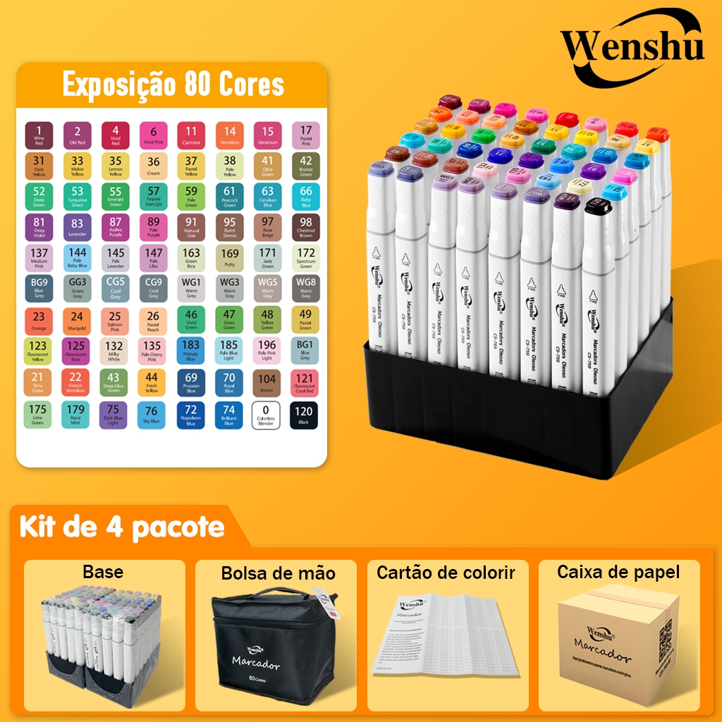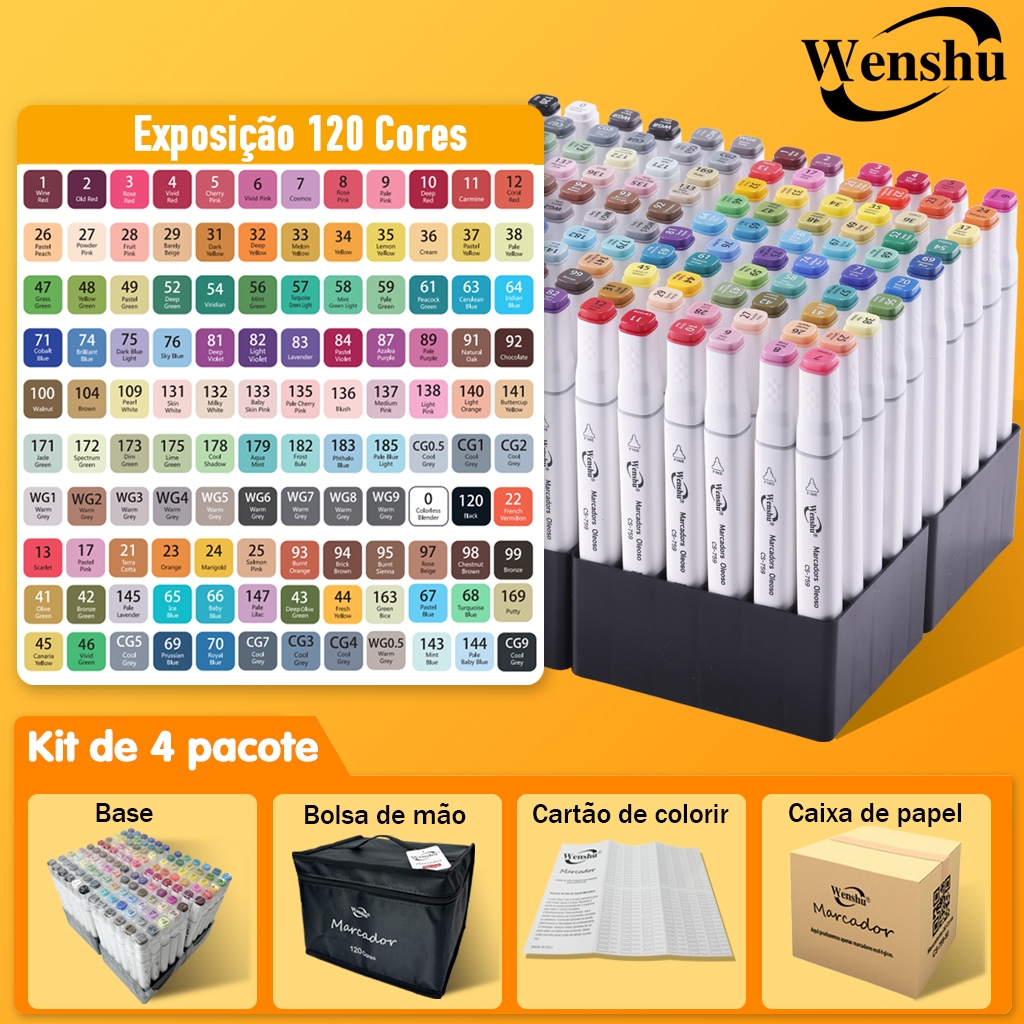 Wenshu Caneta Marcadora Touch Dupla Ponta Ecológicas Álcool para Arte e Desenho 48/80/120/168/204 peças