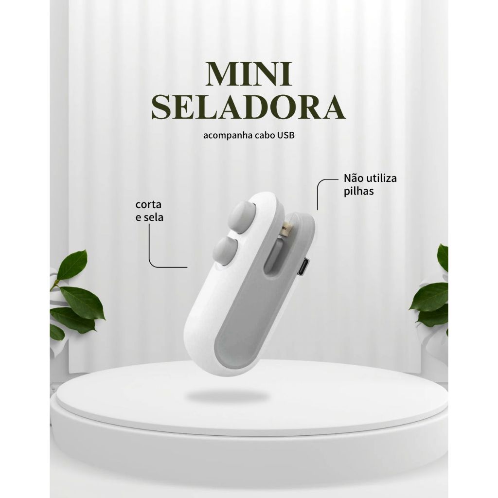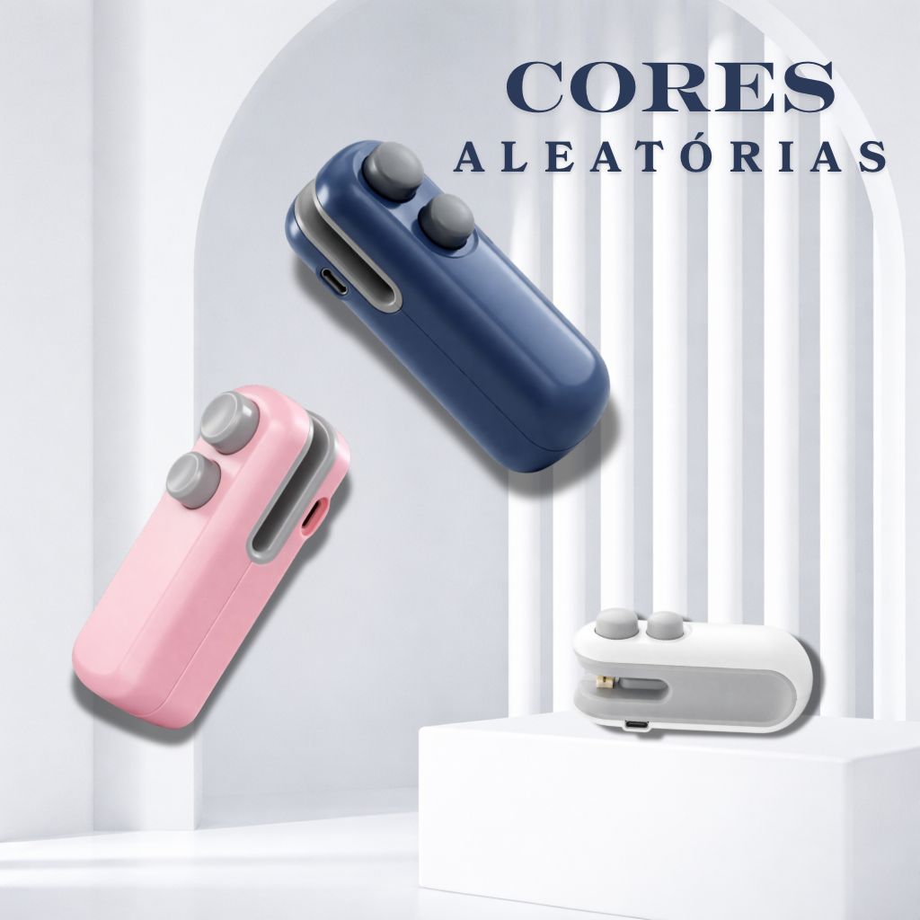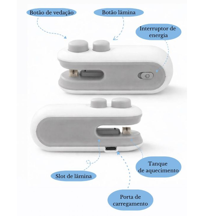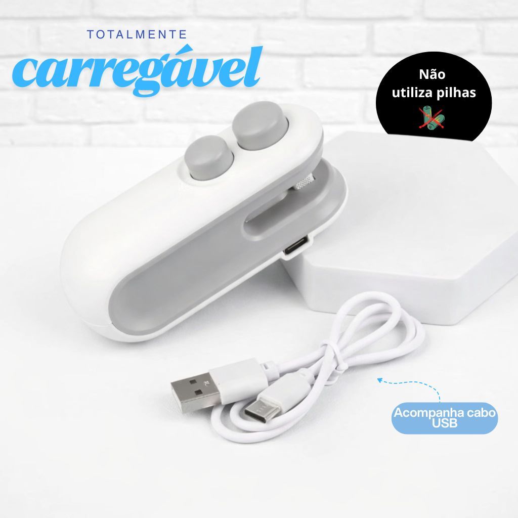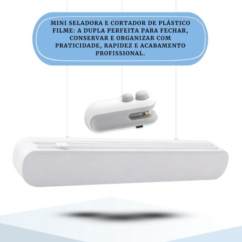 Kit Seladora Portátil 2 em 1 Recarregável USB + Cortador Filme PVC com Ventosa Selador de Embalagens