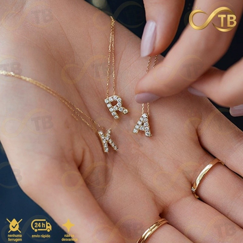TB Moda Colar feminina Elegante com Letra de A-Z Brilhando em Diamante - Presente Luxuoso Mulheres