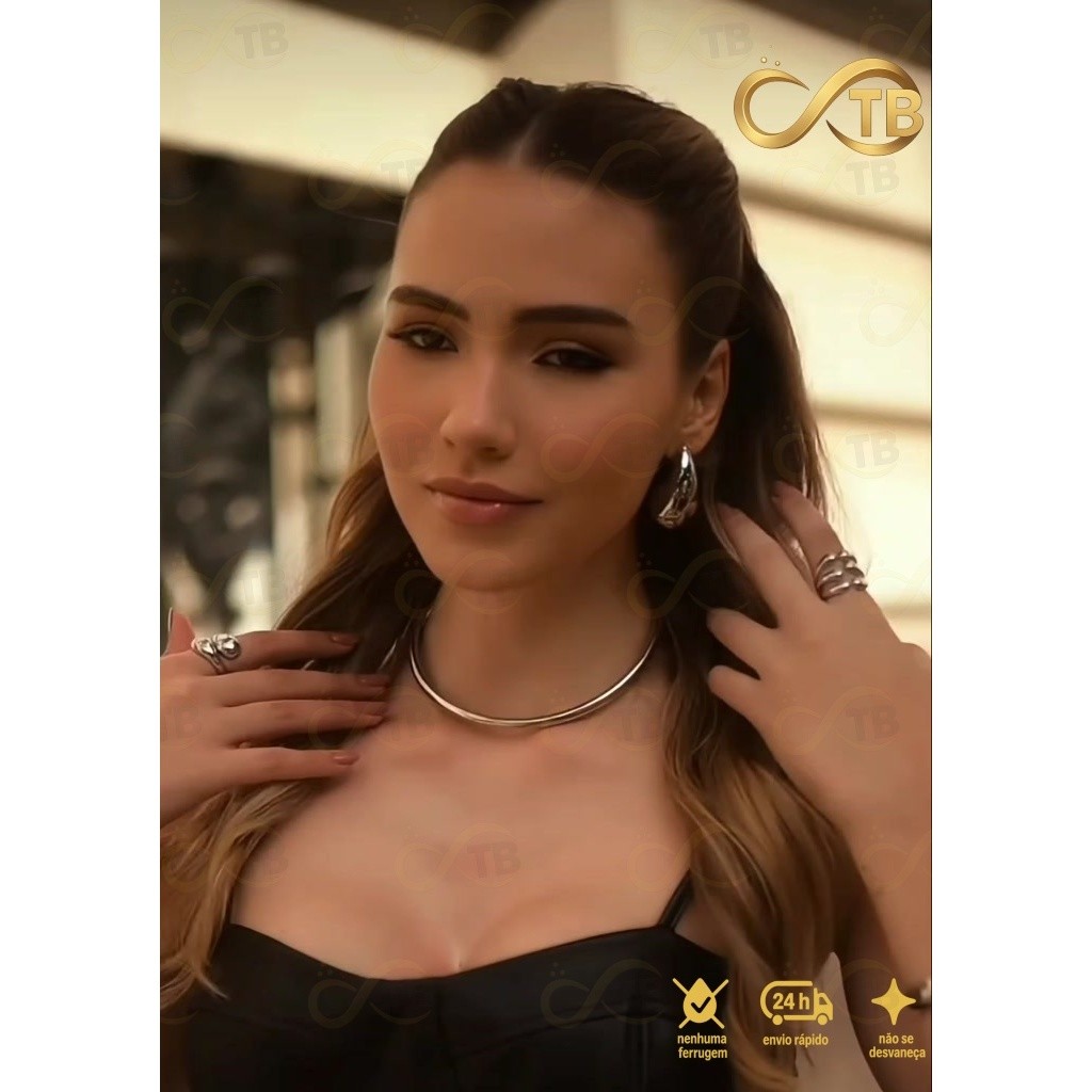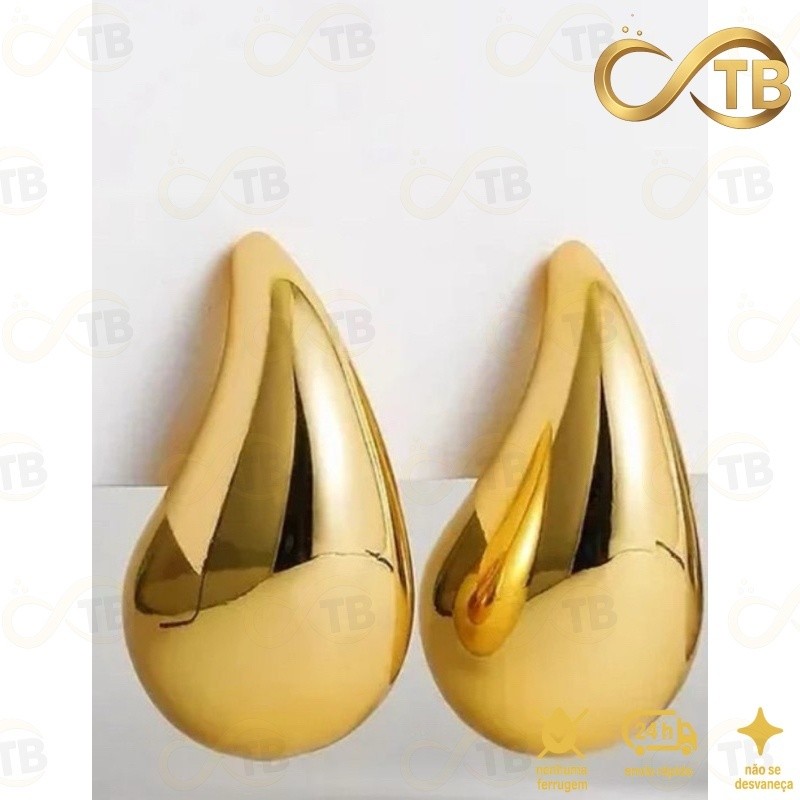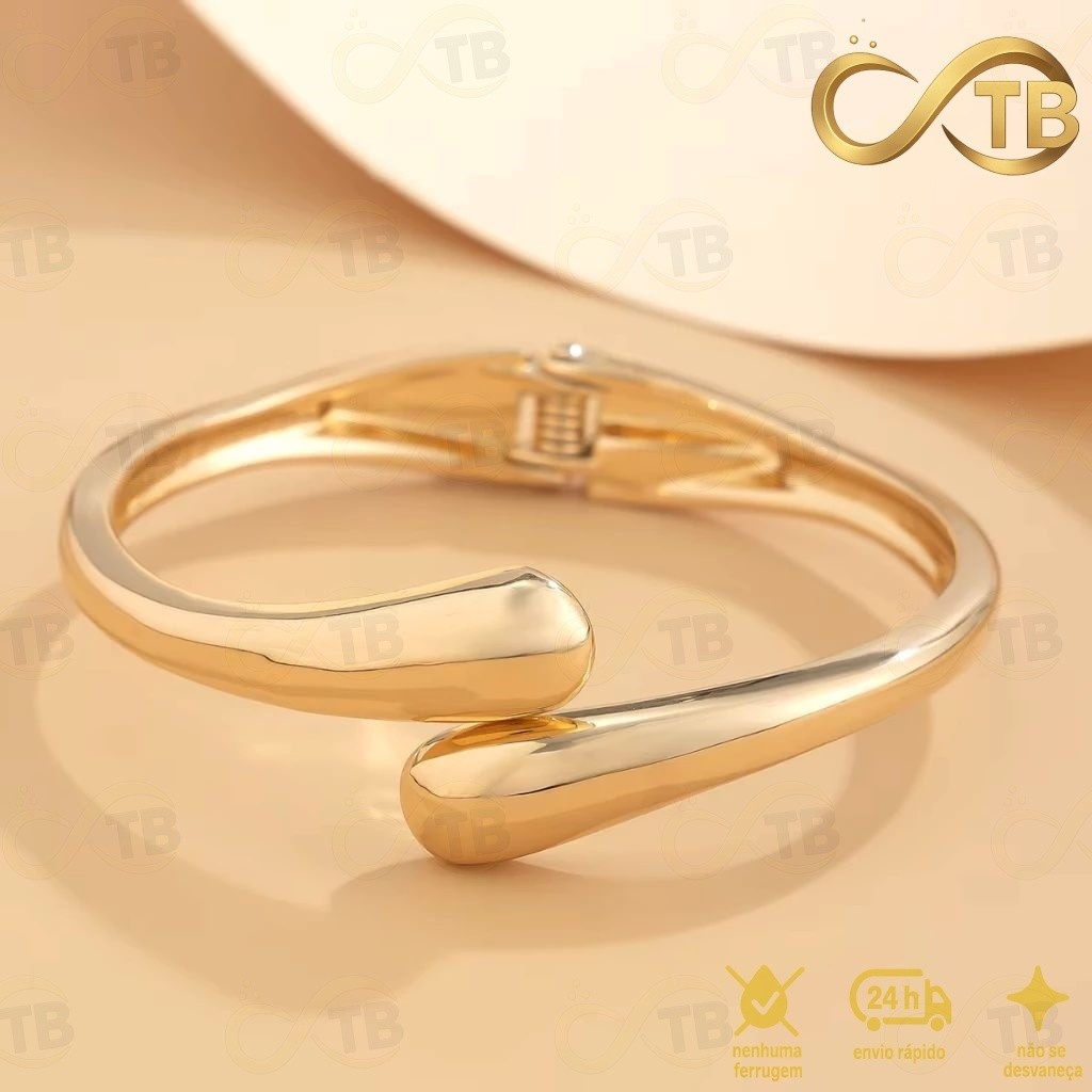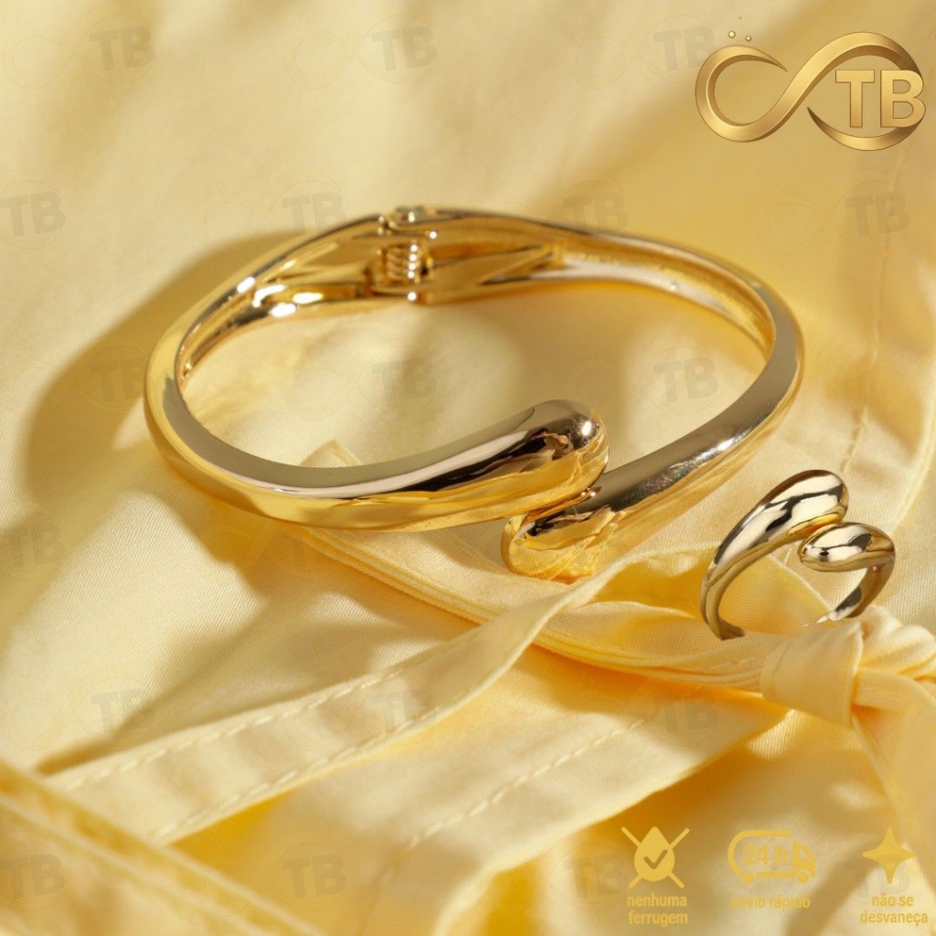 TB Conjunto Pulseira Anel Brincos de Metal Exagerada em Ouro com Design de Gota de Água – Acessório