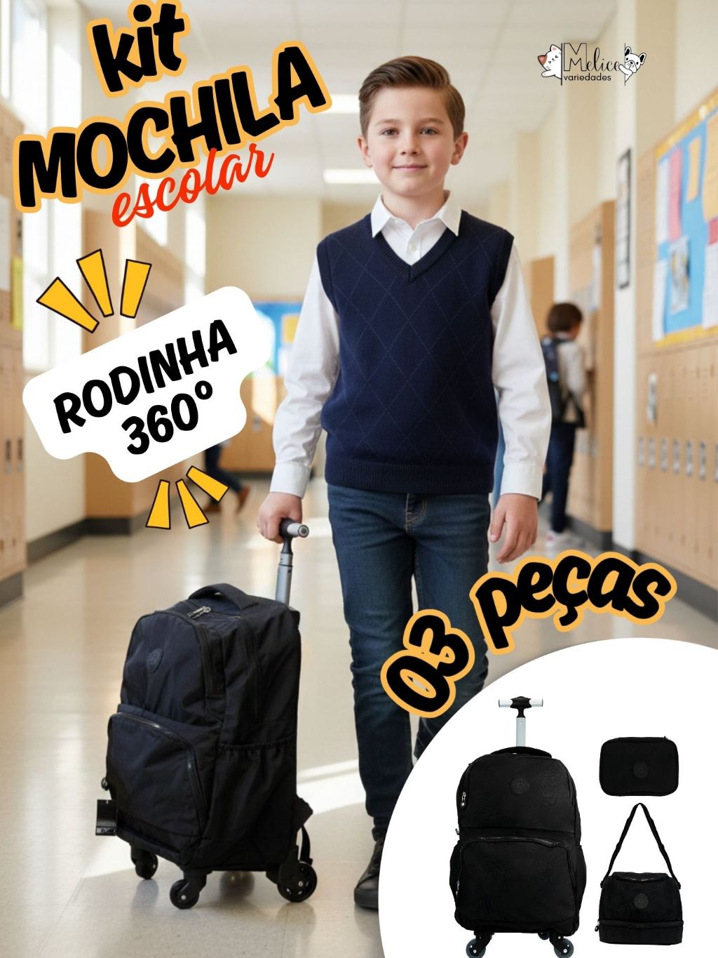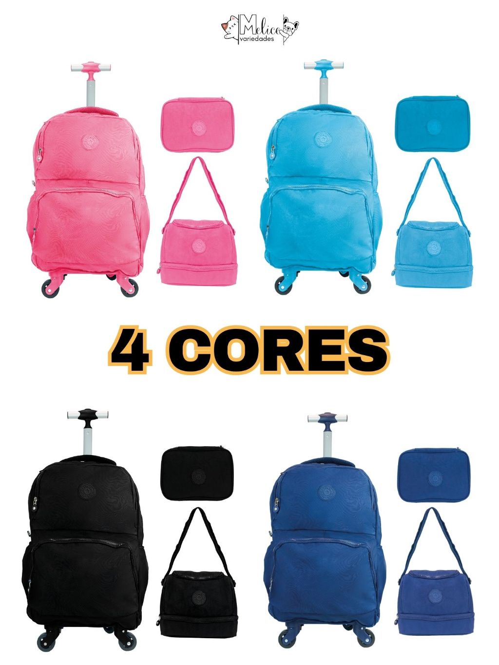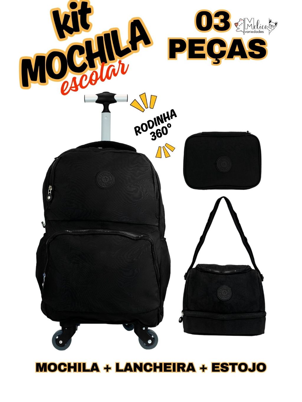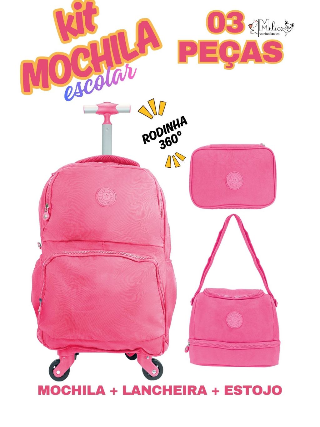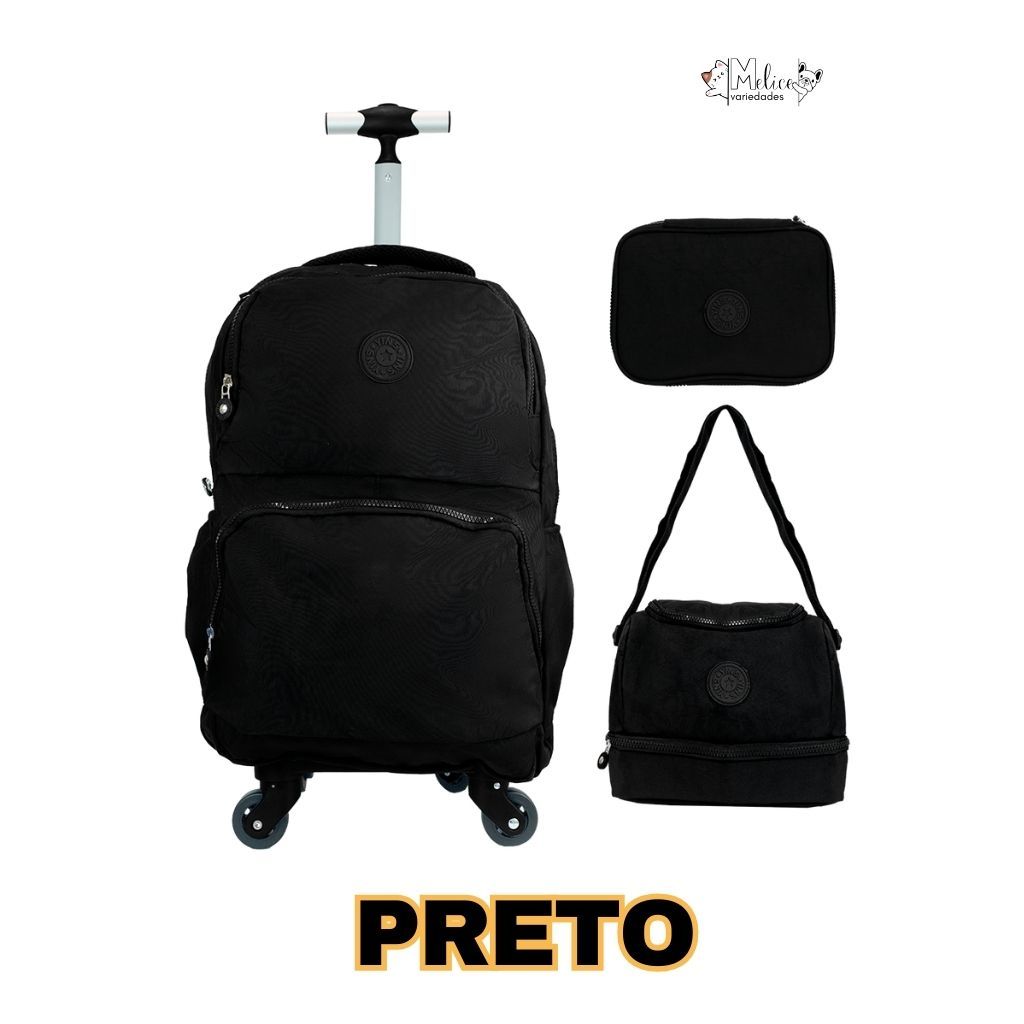 KIT MOCHILA DE RODINHA 360 GRAUS DE GIRO MENINO E MENINA ESCOLAR
