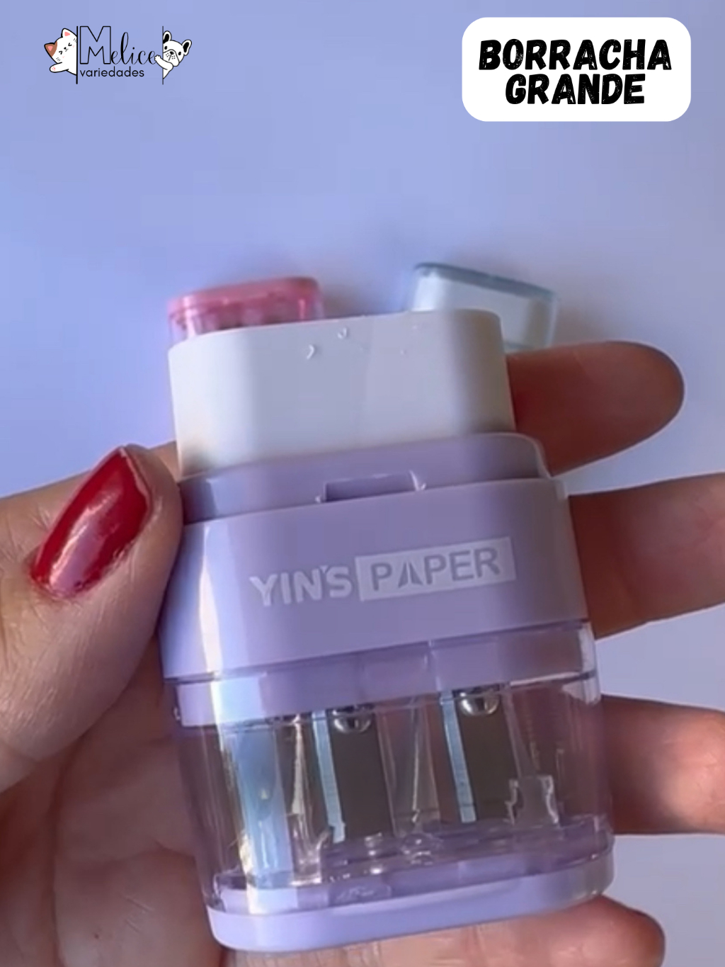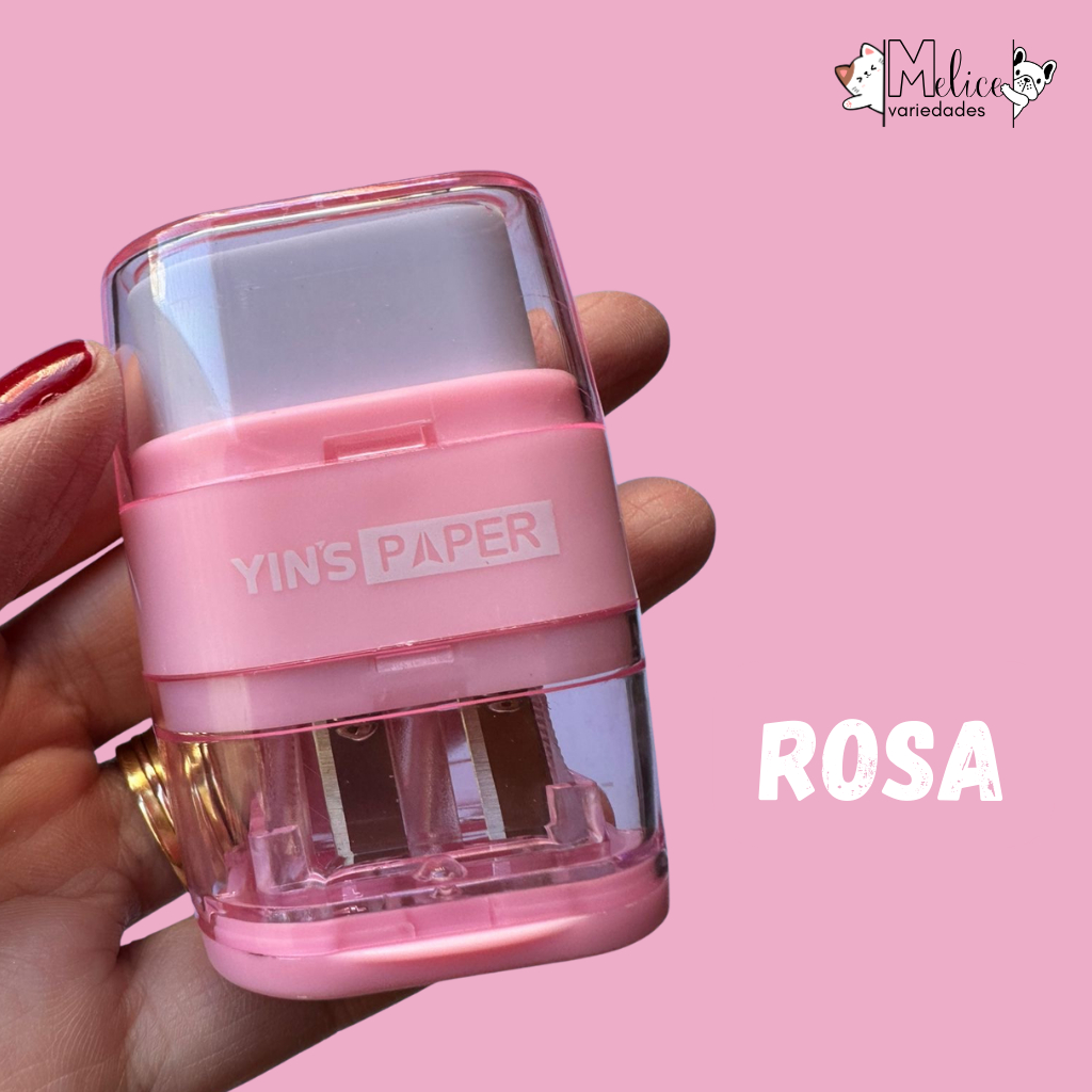 Apontador 2 em 1 com BORRACHA - DEPÓSITO E APONTADOR DE LAPIS CONVENCIONAL E JUMBO - CORES PASTEL
