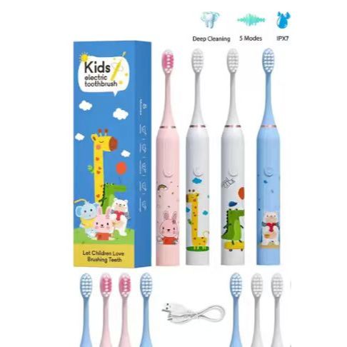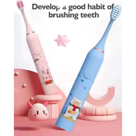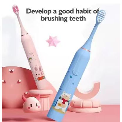 Escova Dental Elétrica Ultra-Sônica Para Crianças Acústica Onda Fofa Cabelos Suaves Dupla Face Limpa Cuidados