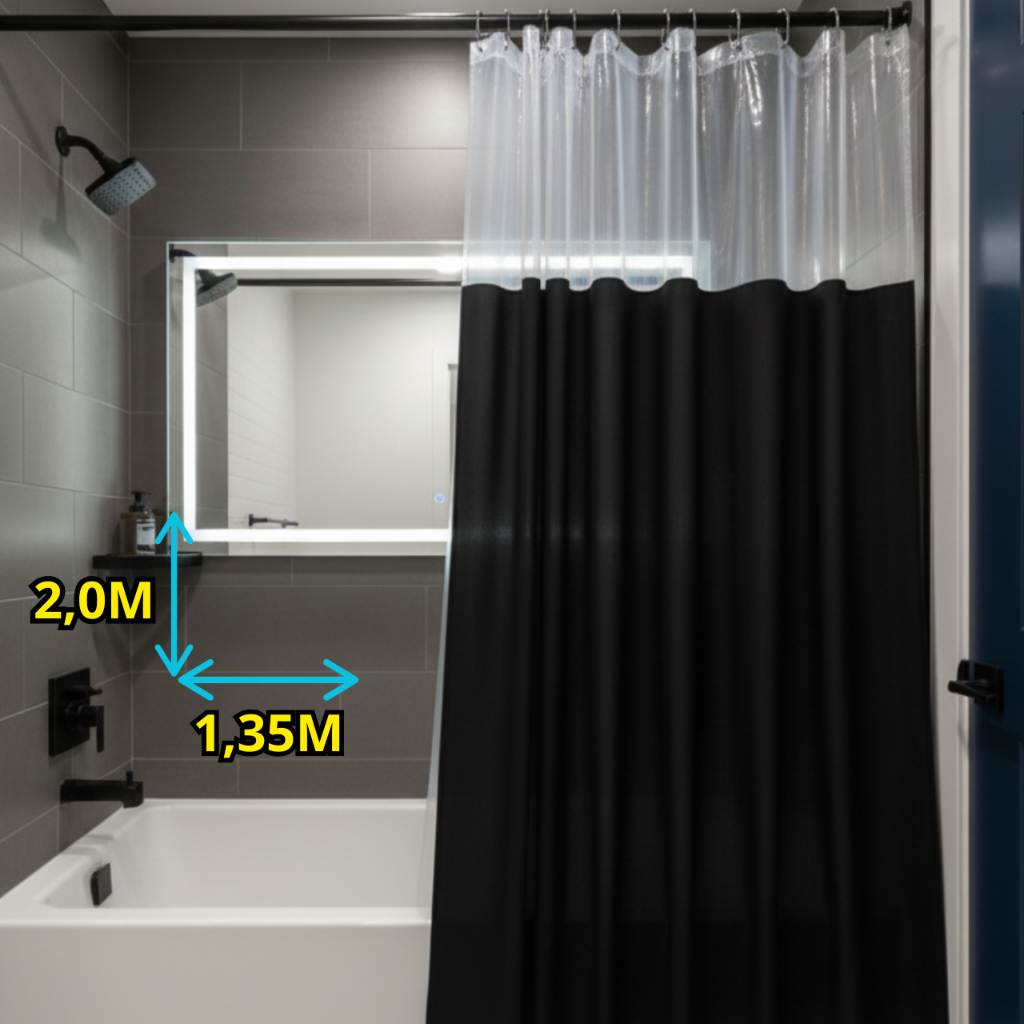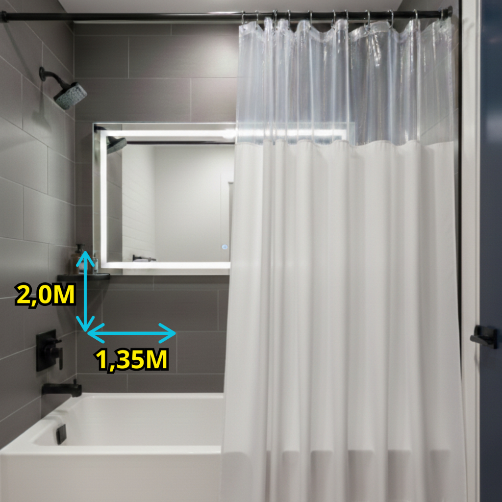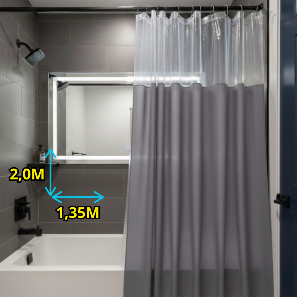 Cortina De Box Banheiro Lisa Com Visor Impermeável Antimofo