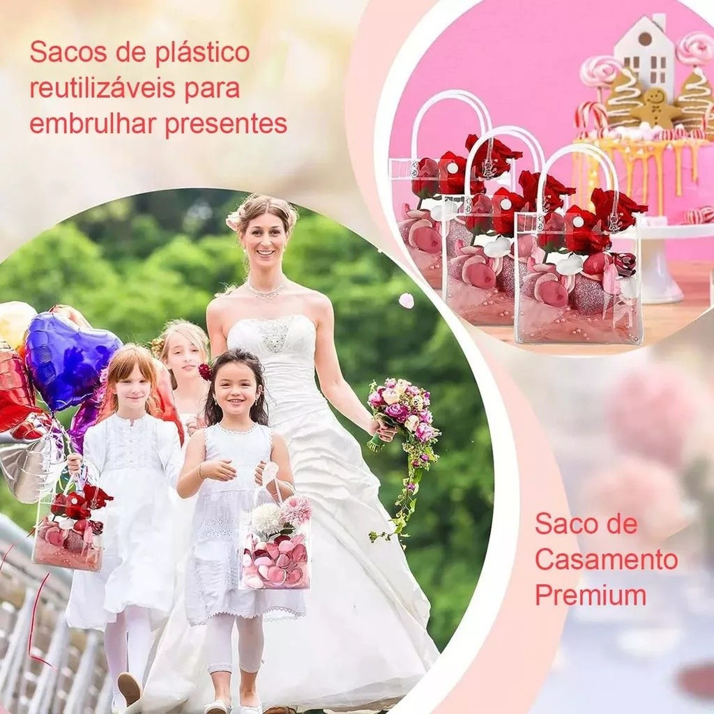 Kit 10/15/20 Unidades Sacolas PVC Transparente 17x23x7cm