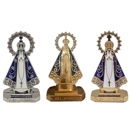 Kit 5/10/15 Carruagem de Nossa Senhora Aparecida Metal 5,5cm - Adesivo Painel Carro com Fita Dupla Face