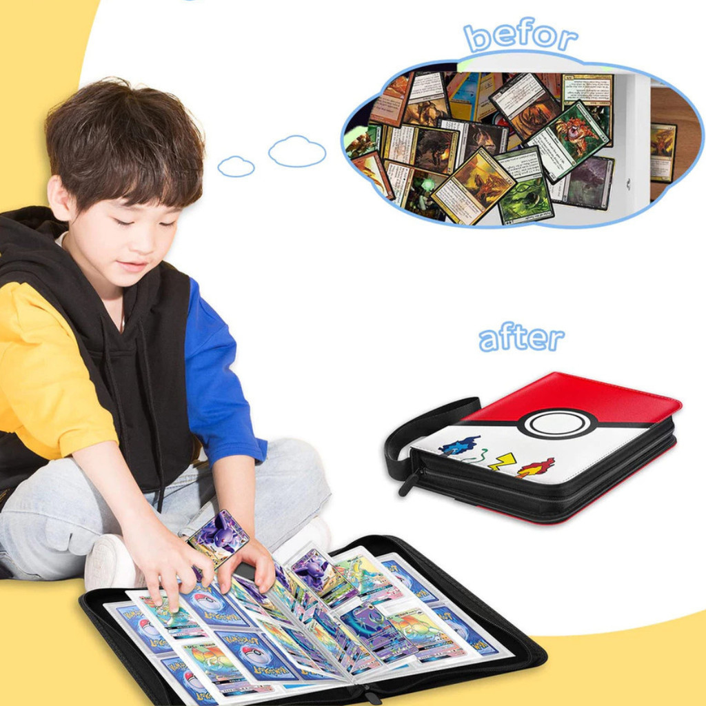 Álbum Fichário Pokémon p/ 400 Cards Colecionador Pasta Fichário Pokemon Compartimento Para 400 Cartas Album Cards