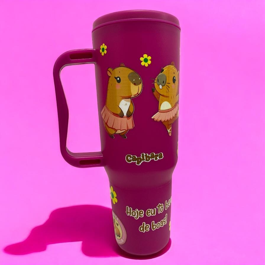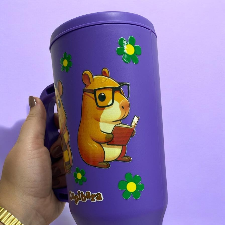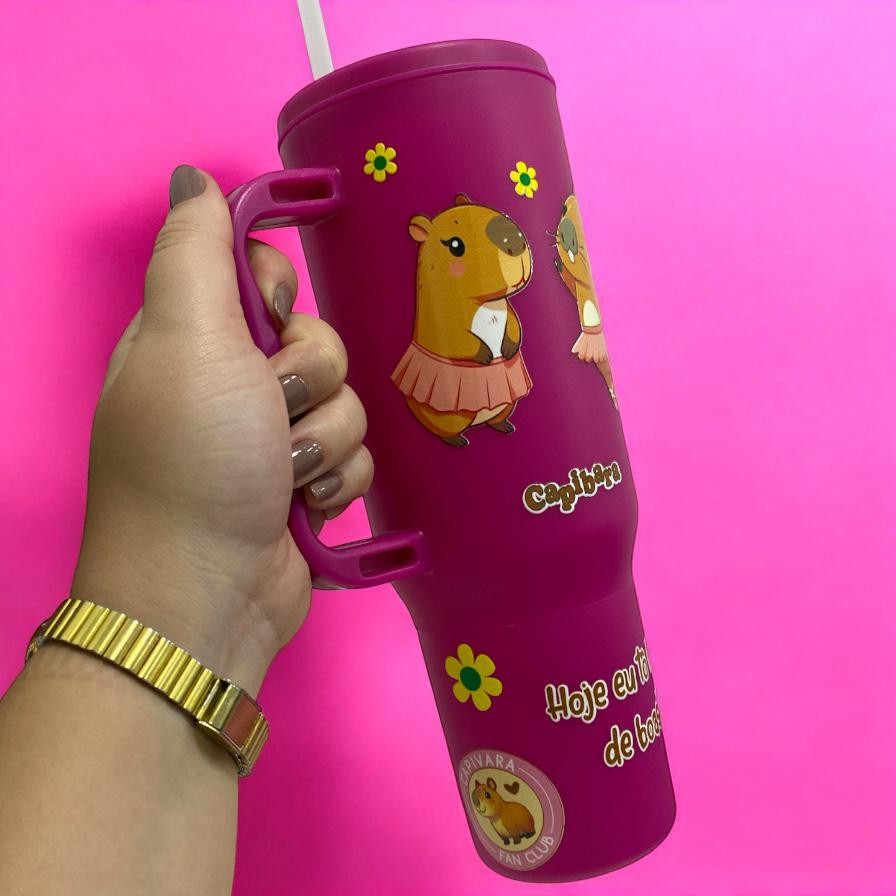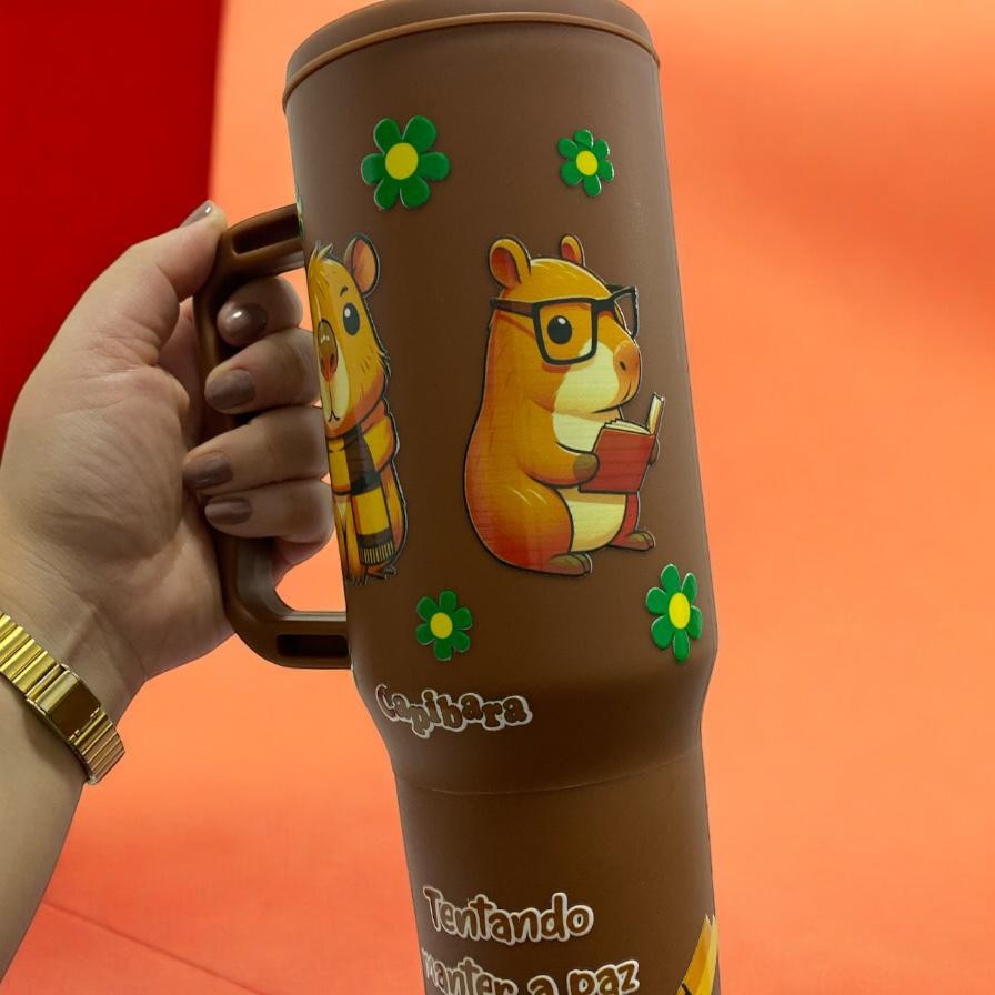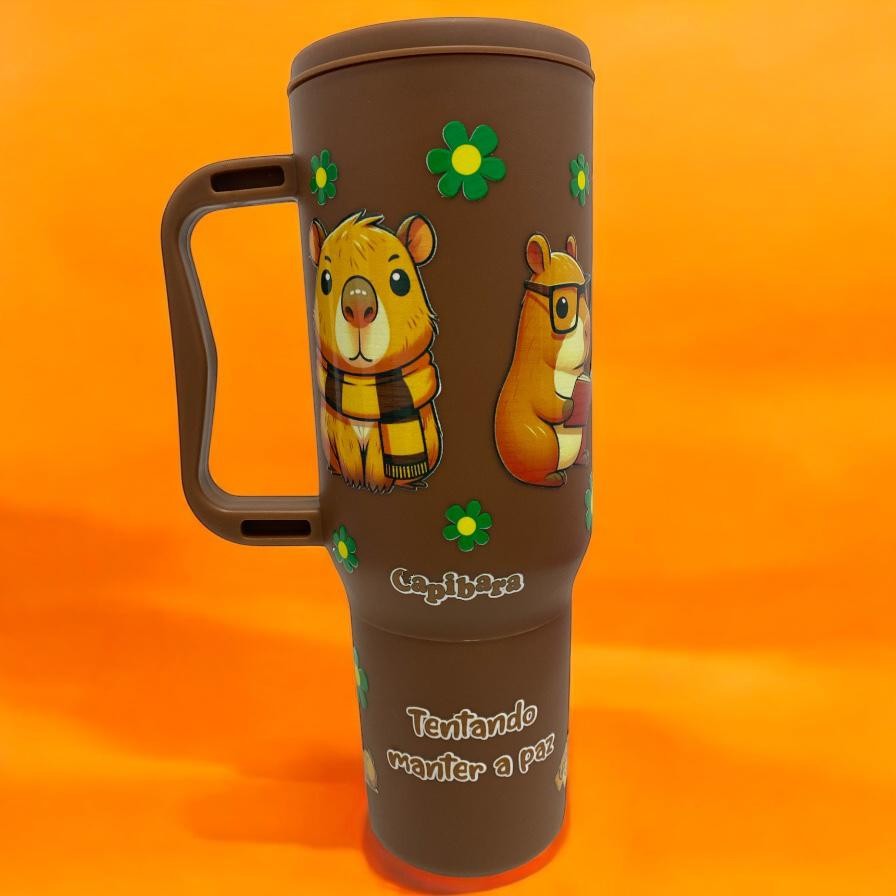 Copo com Canudo Capivara 1200ml Em Policarbonato + Brinde
