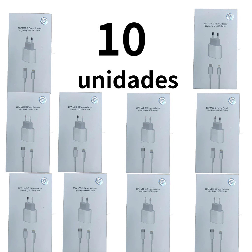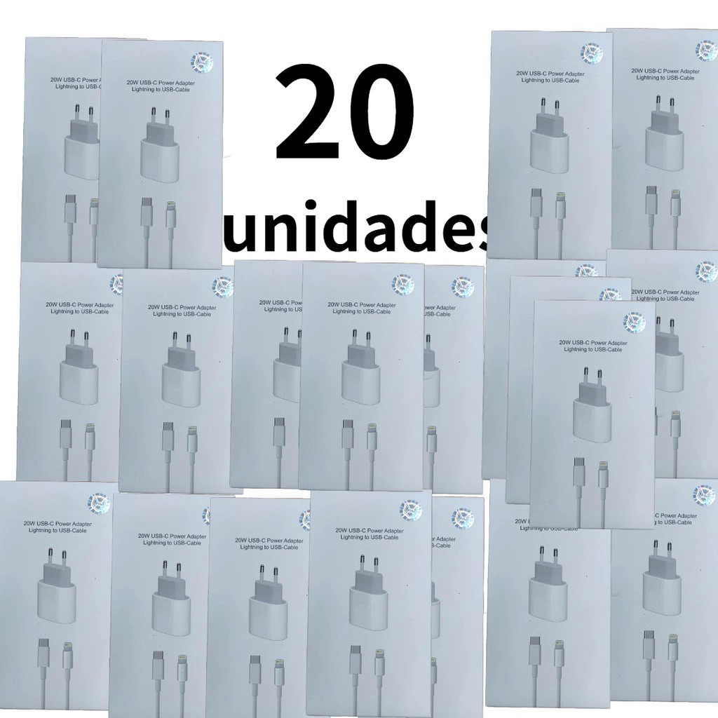 Kit 5 10 e 20 pcs Carregador iPhone Turbo 20W Fonte + Cabo USB-C Lightning Rápido