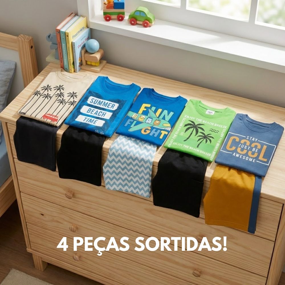 Queima de Estoque Verão Kit 4 Peças Roupa Conjunto Infantil Menino Algodão Masculino Roupinha