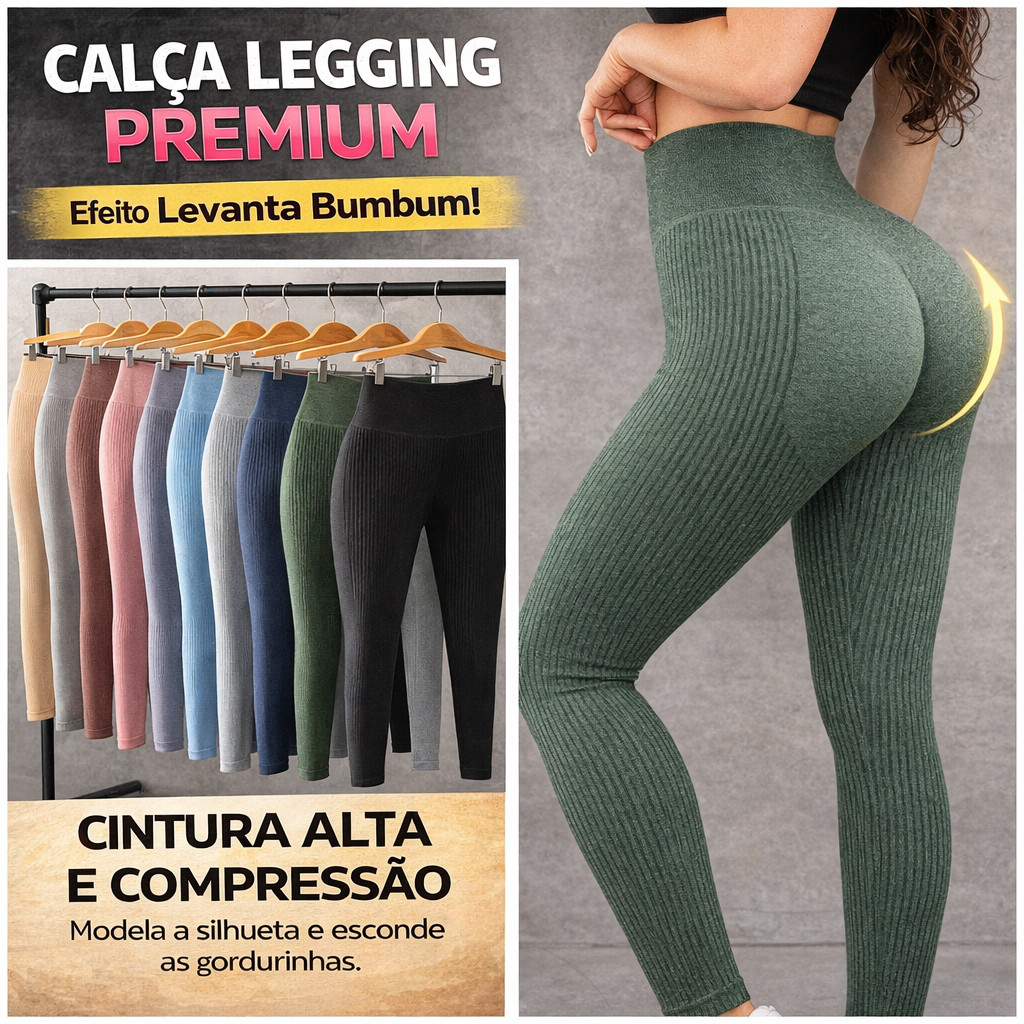 Calça Legging Feminina Premium Cintura Alta – Levanta Bumbum, Sem Costura, Não Transparente