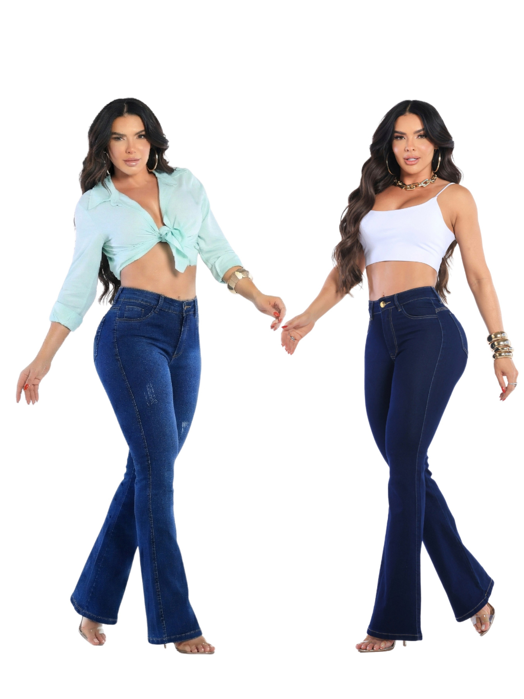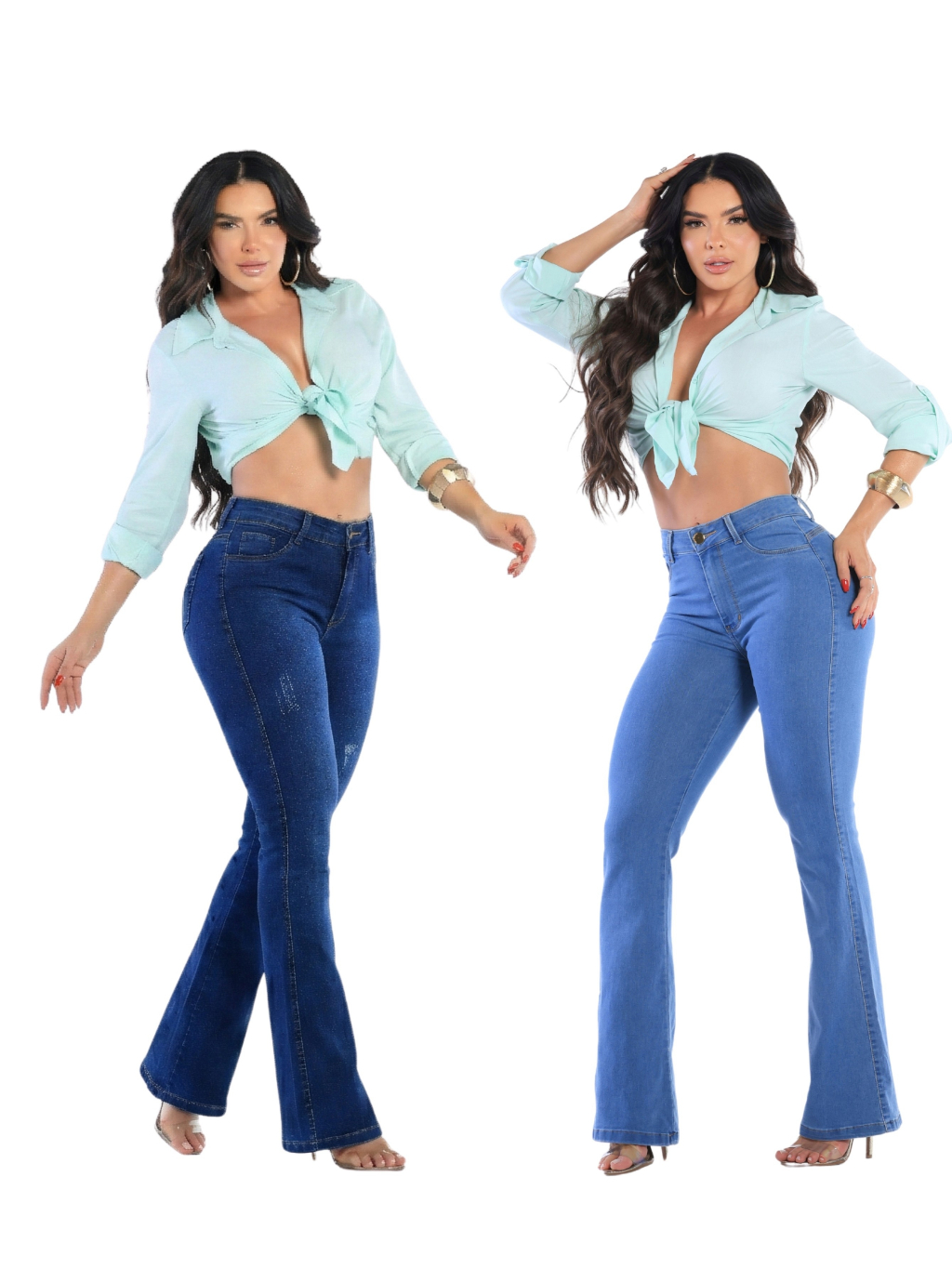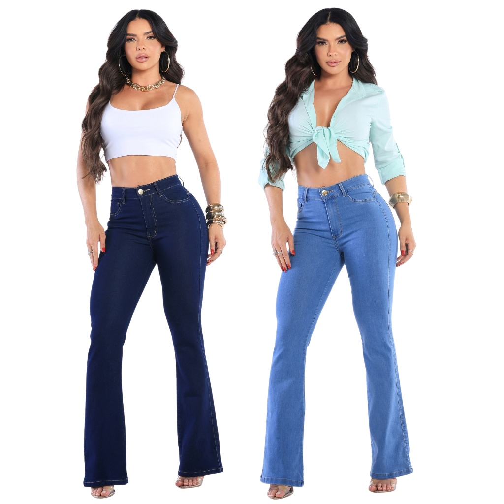 Kit 2 Calças Jeans Feminina Flare Cós Alto Levanta Bumbum Com Lycra Premium Boca De Sino