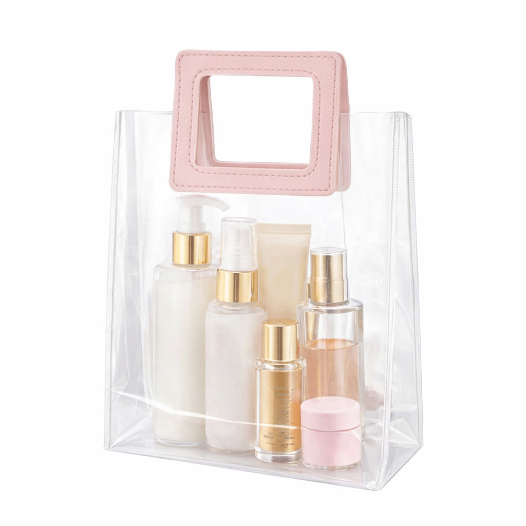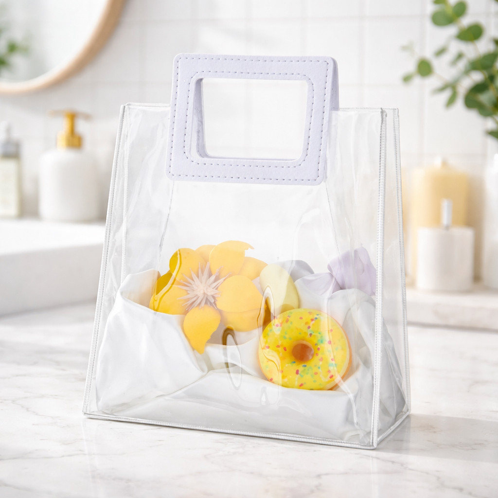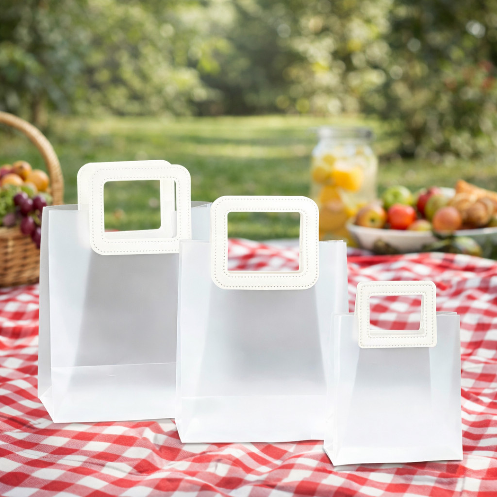 Kit Sacola Bolsa Transparente Reforçada Com Alça de Couro Quadrada