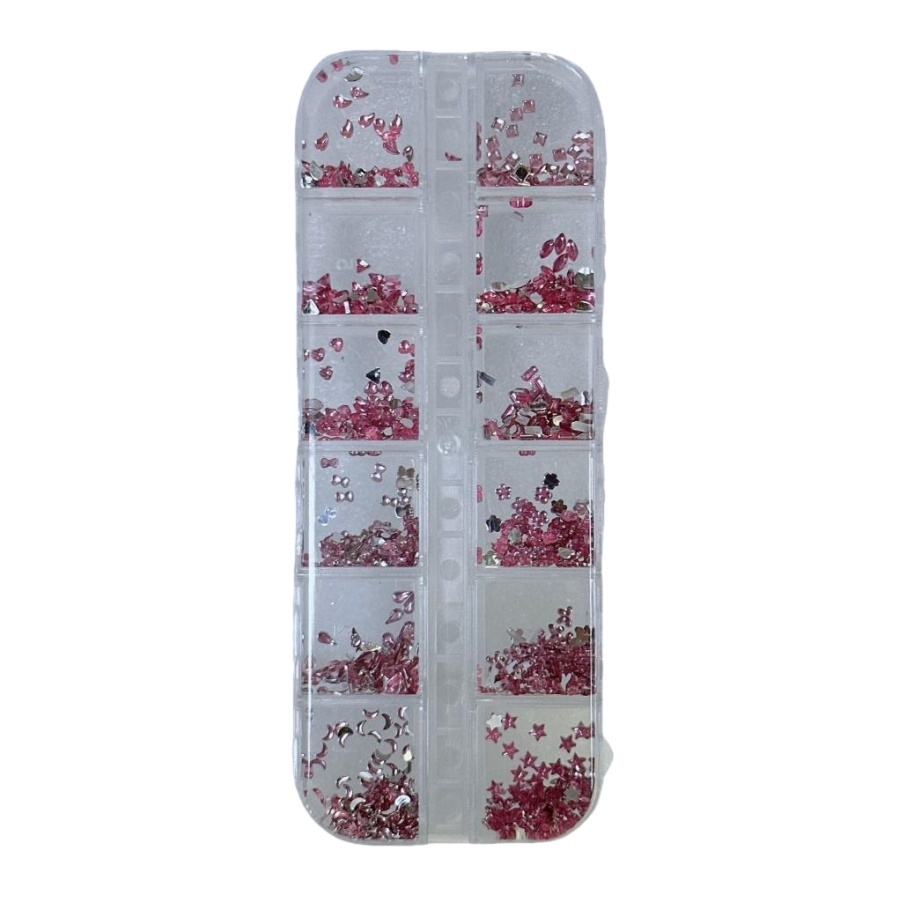 Kit Estojo Strass Prata Para Maquiagem e Nail Art Coração/Colorido/Prata/Pink
