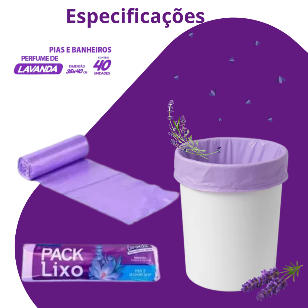 Kit 4 Sacos de Lixo Perfumados Lavanda | 160 Sacos | Pia e Banheiro | 34x38cm | Neutraliza Odores