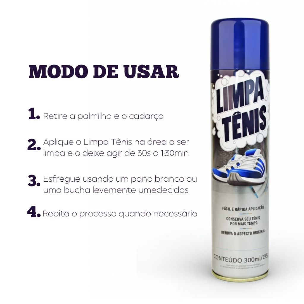 Kit 1 Até 4 Limpa Tênis Branco Colorido Espuma Mágica Limpa Tênis Petroplus Spray Limpador a Seco