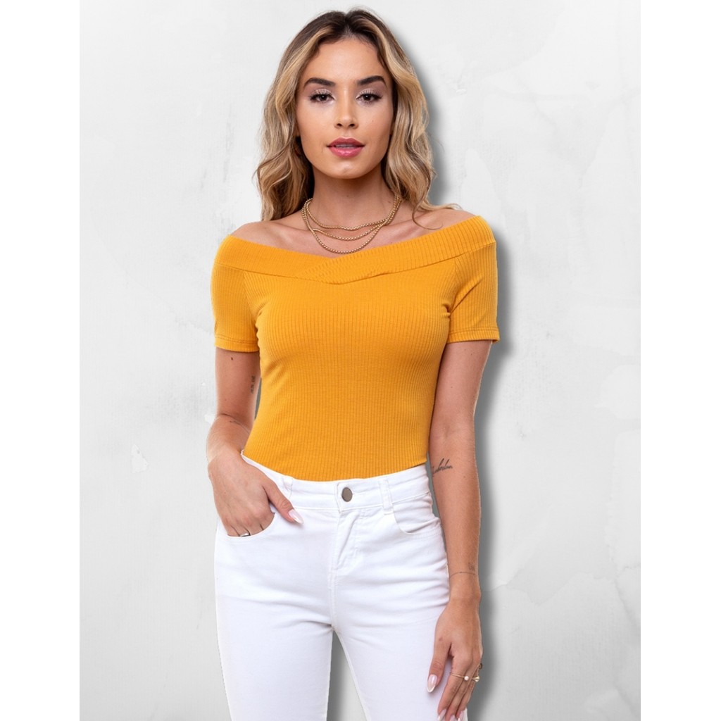 Body Canelado Manga Curta Gola Canoa Blusinha Feminina Básica Minimalista Casual Elegante Modinha