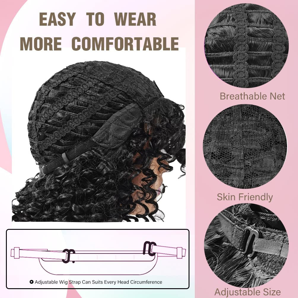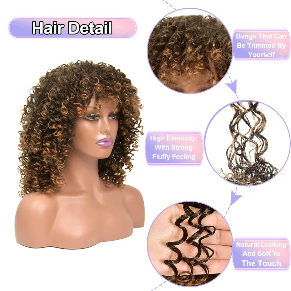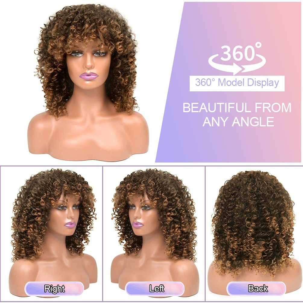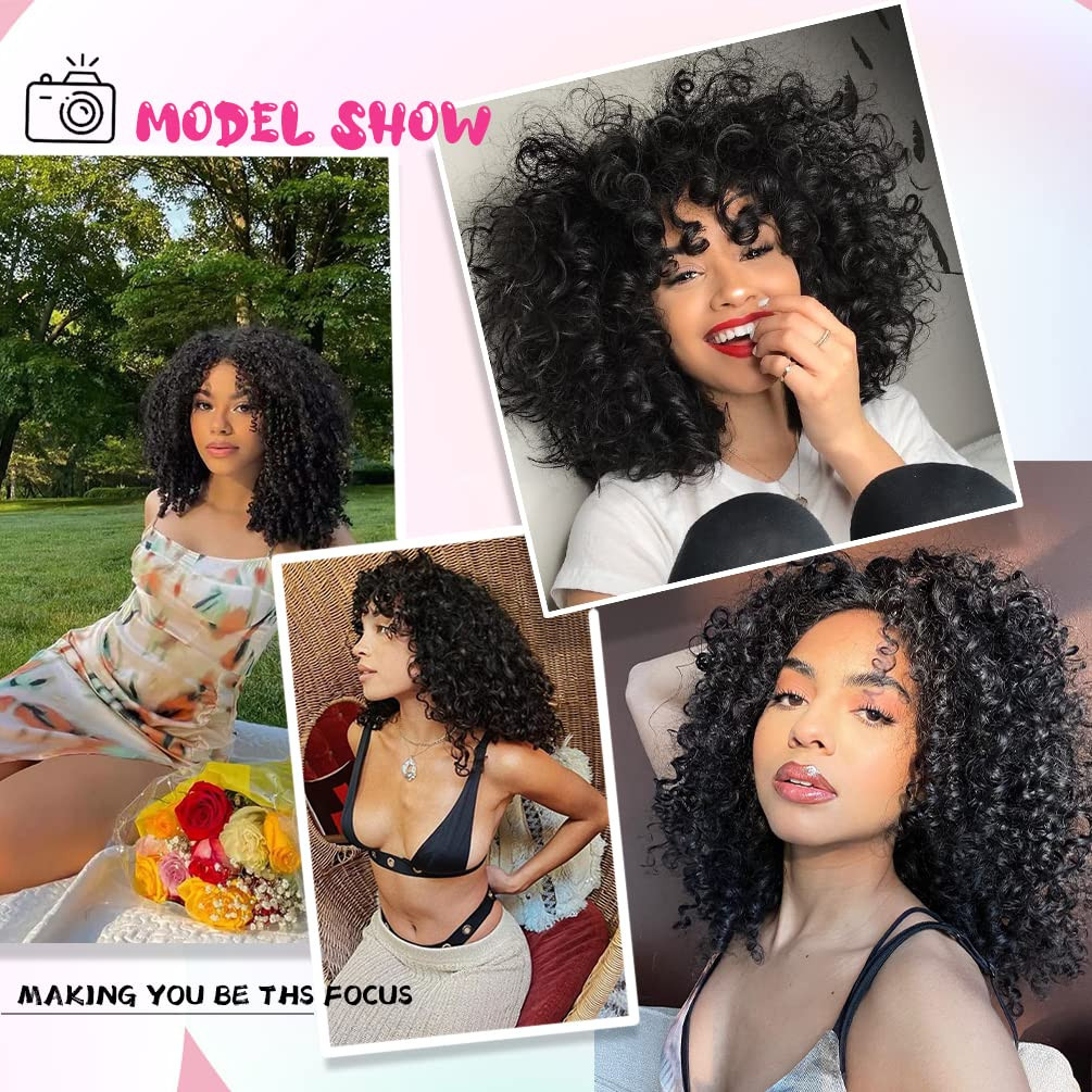 42741 Peruca Afro Cacheada para Mulheres, Perucas Cacheadas Pretas Sintéticas Naturais com Franja Preta Premium Sintétic