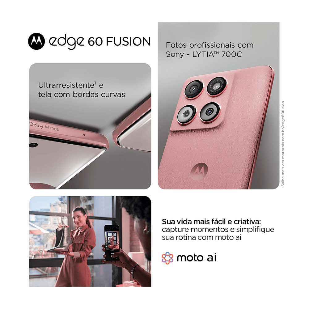 Smartphone Motorola Edge 60 Fusion 5G - 256GB, 8GB RAM+16GB Ram Boost moto AI 50MP Sony Camera