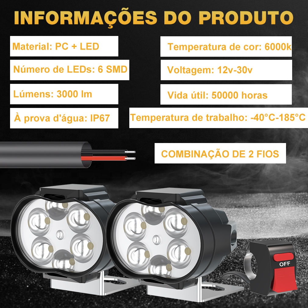 2pcs Holofote Externo De Motocicleta Com Interruptor faróis de moto e lâmpada de nevoeiro Farol Auxiliar De Led