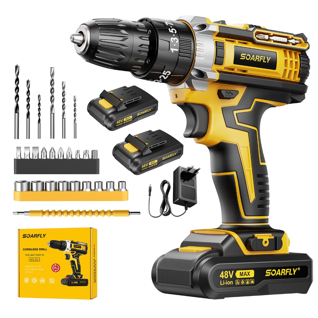 Parafusadeira/Furadeira be Impacto Kit Maleta COM DUAS BATERIAS Kit de 28pcs 220V/110V