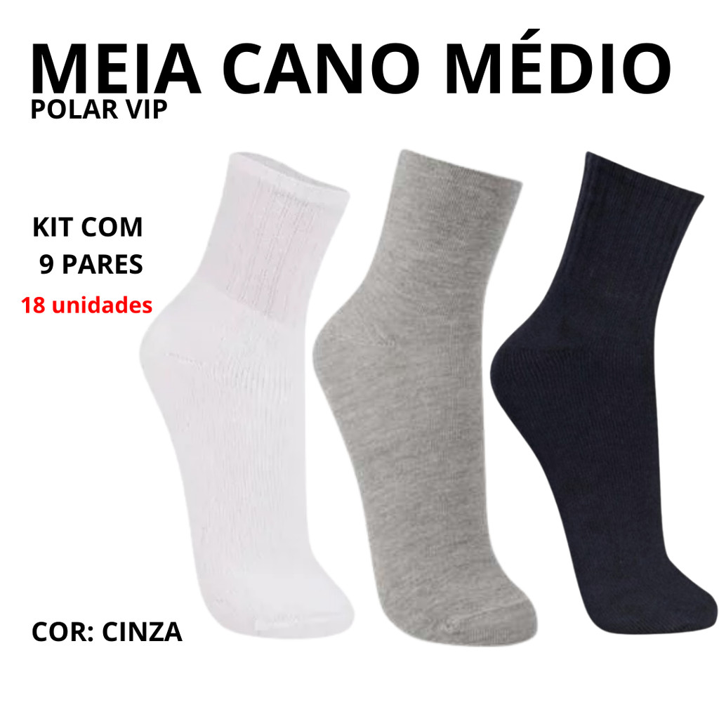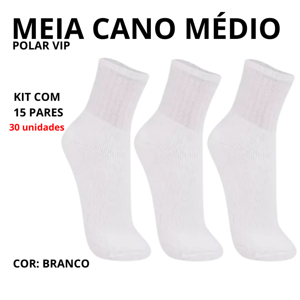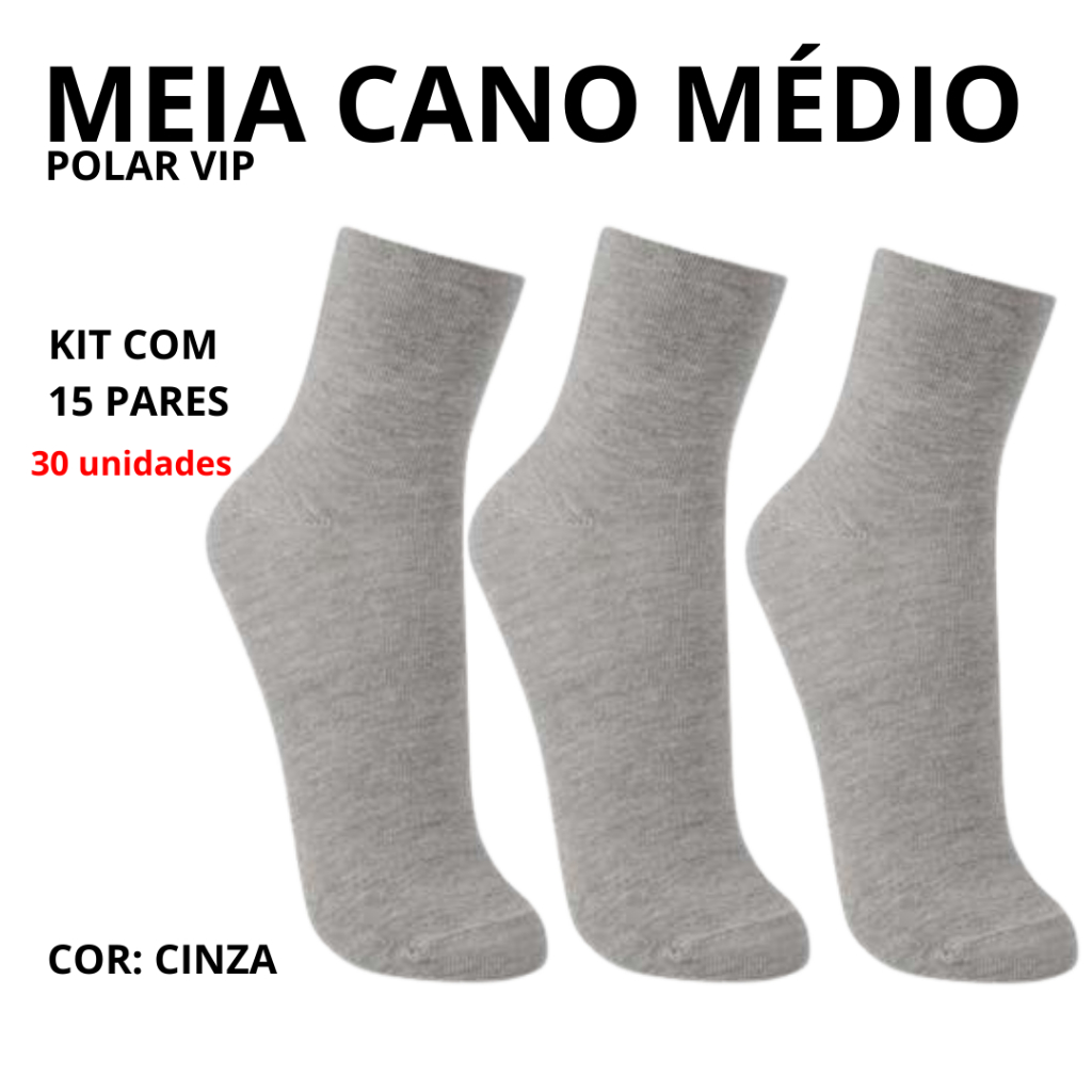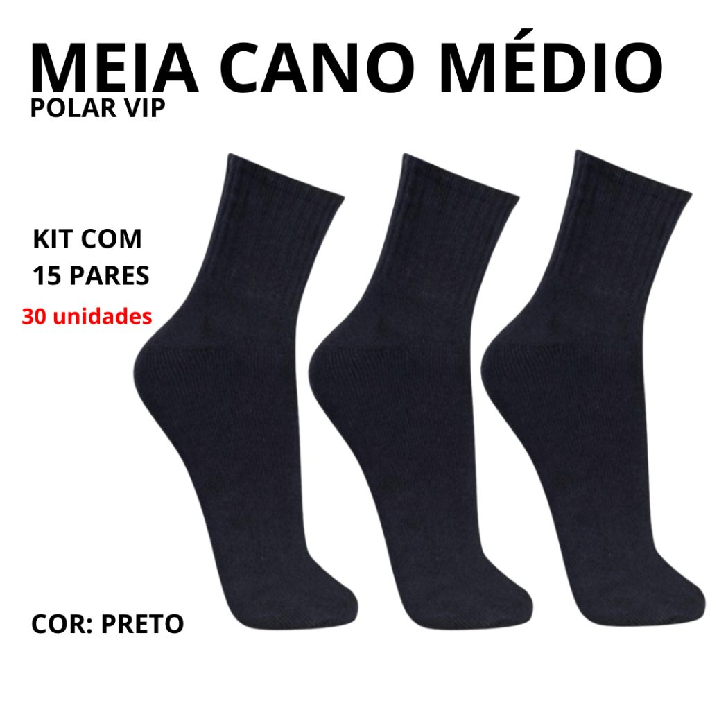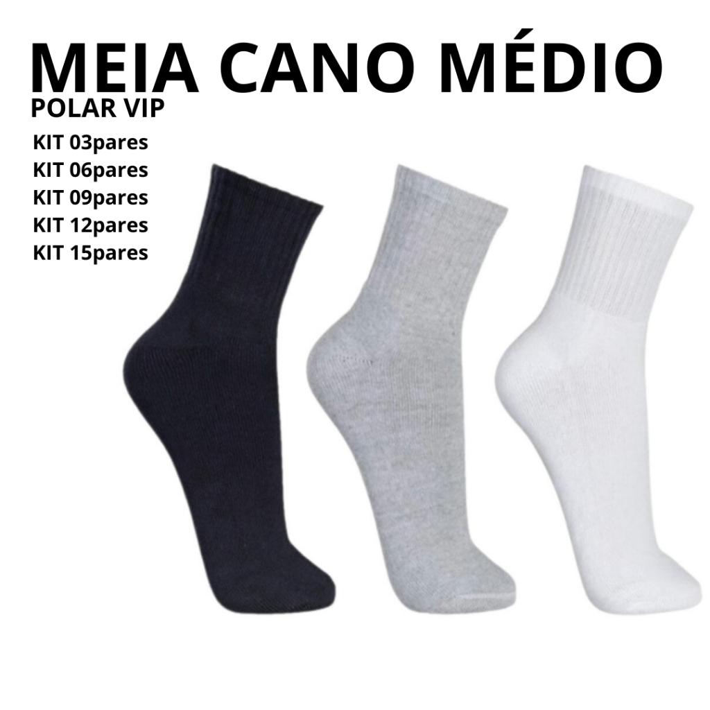 Kit Até 15 Pares De Meias Cano Médio Masculino Tamanho 39 a 43 - Polar Vip