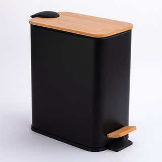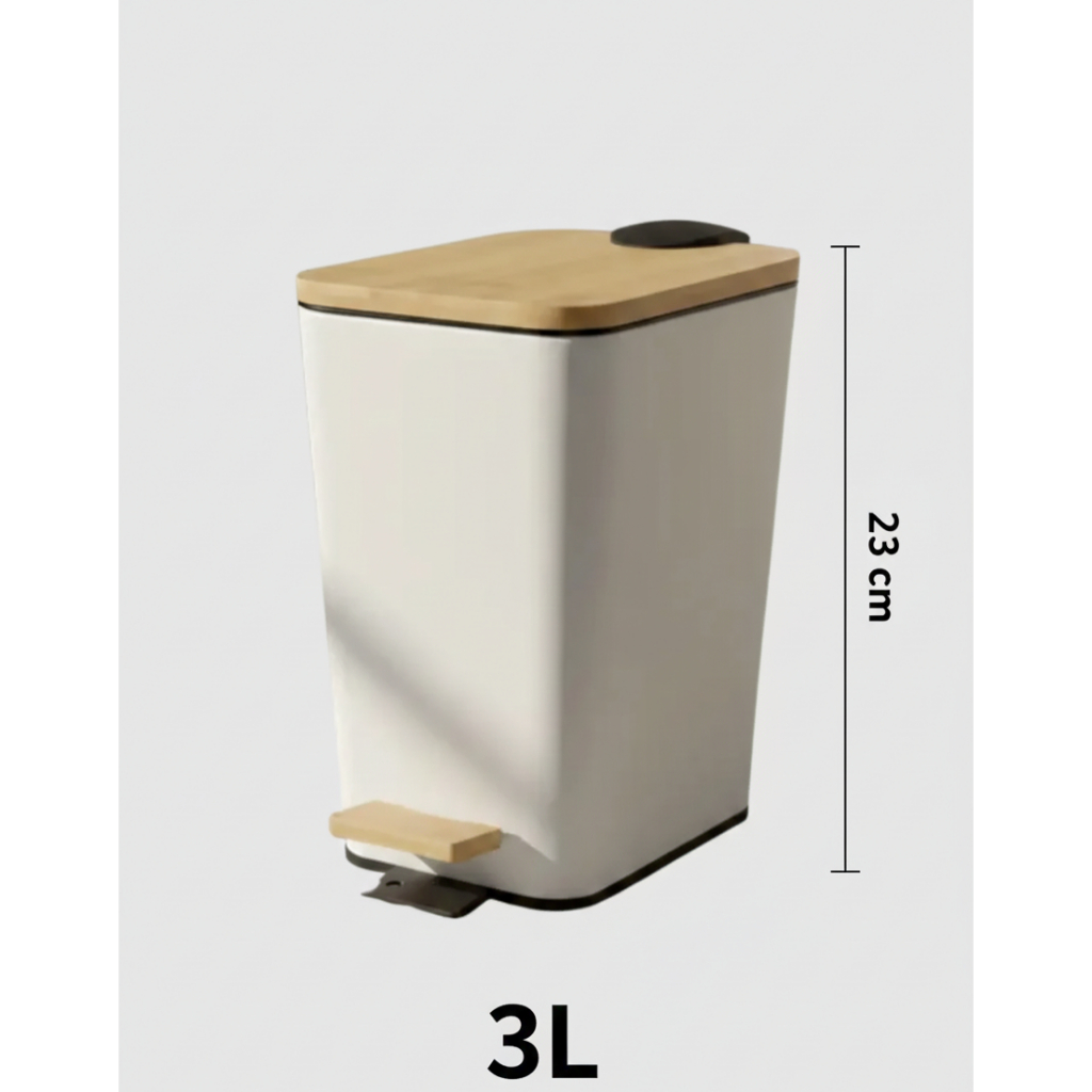 Lixeira Multiuso em Aço com Tampa de Bambu e Pedal Grande para Casa Cozinha Banheiro