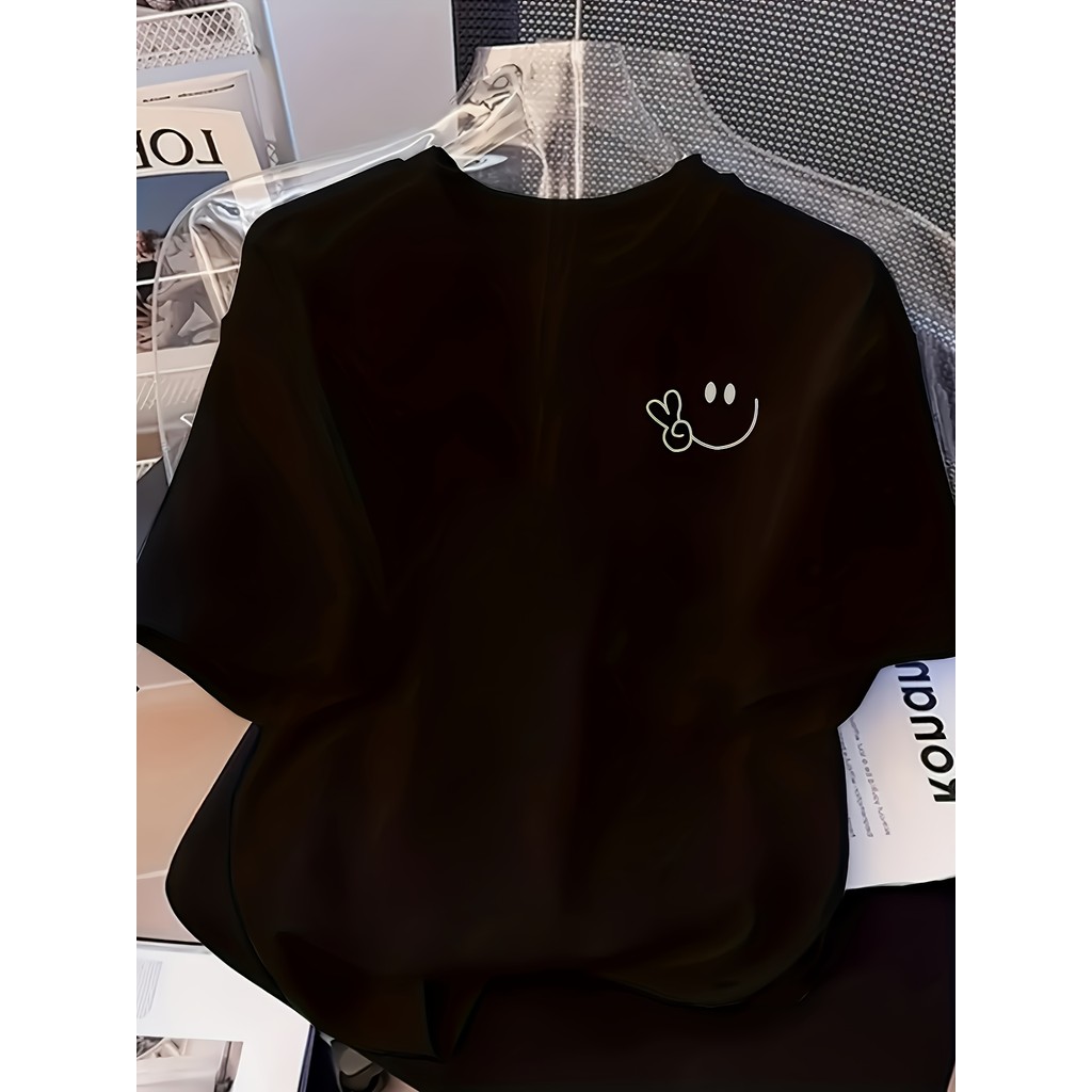 2026 Nova Camiseta Feminina Plus Size De Algodão Com Estampa De Carinha Sorridente E Gesto De "OK" Feito Com A Mão