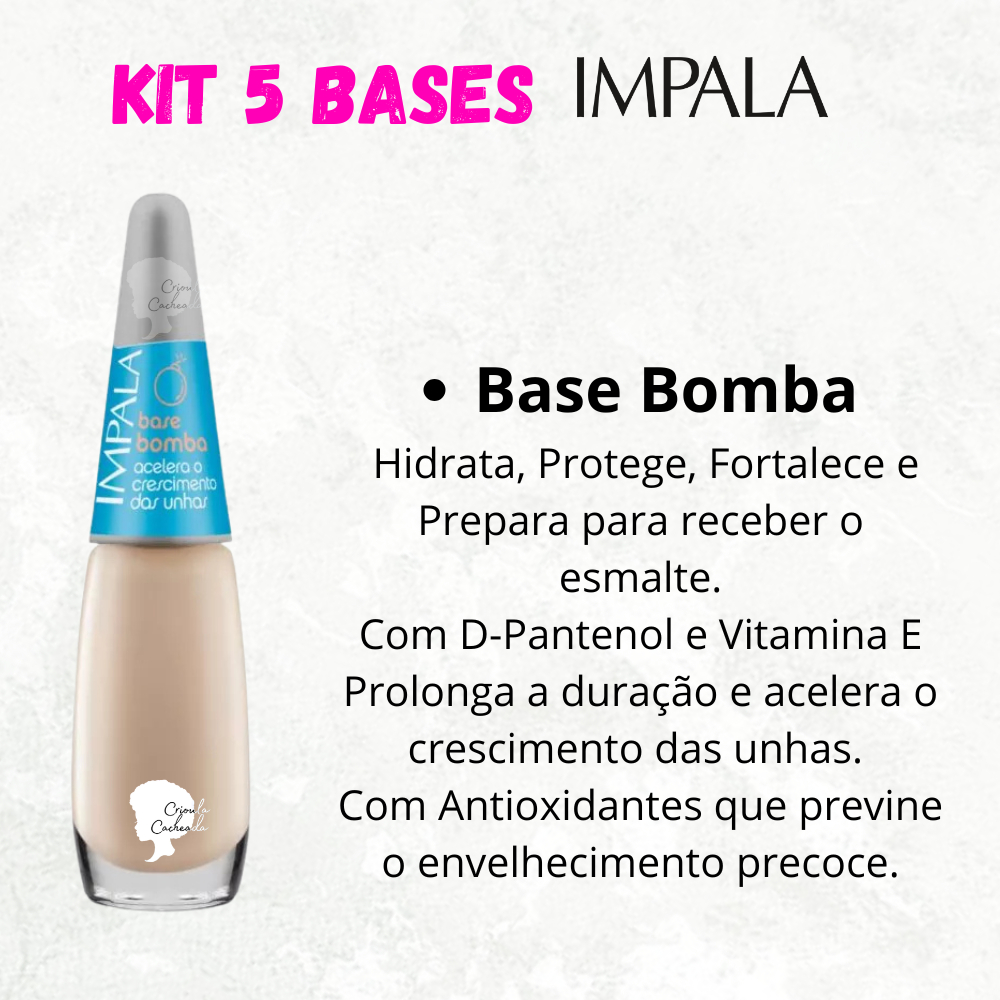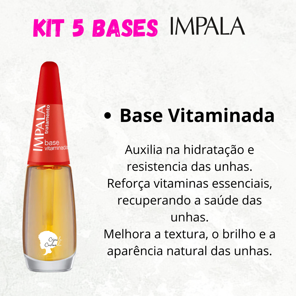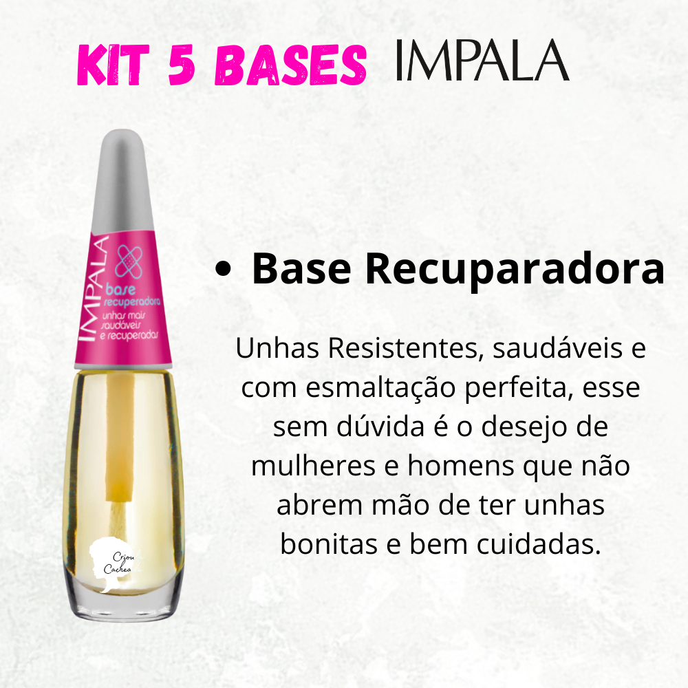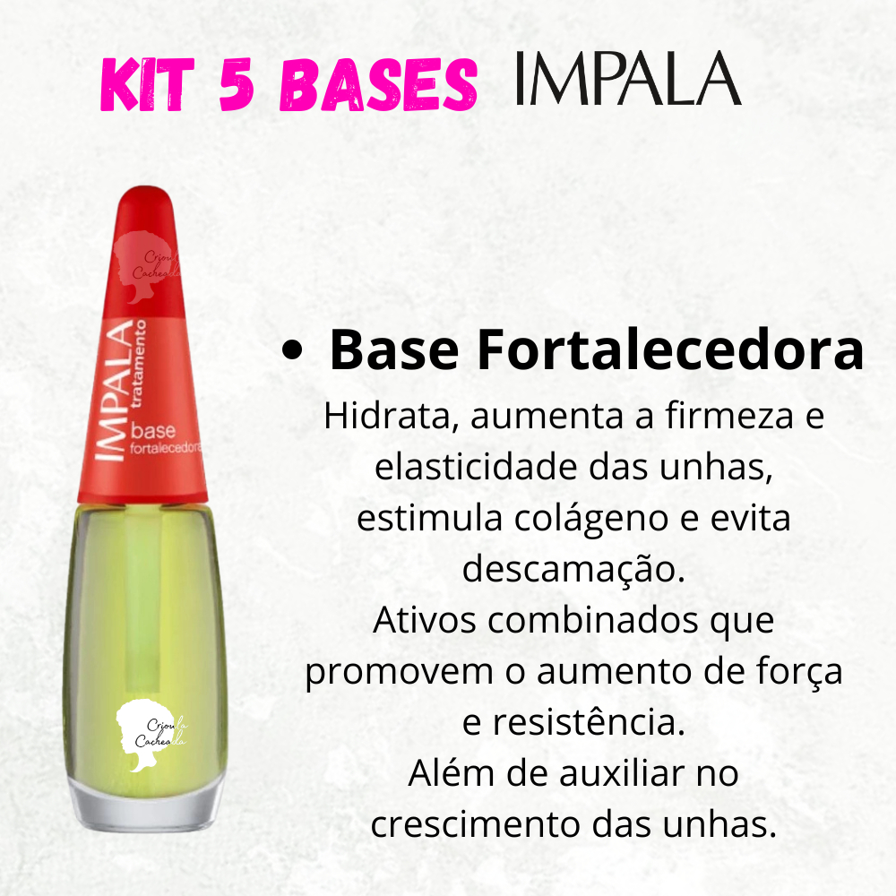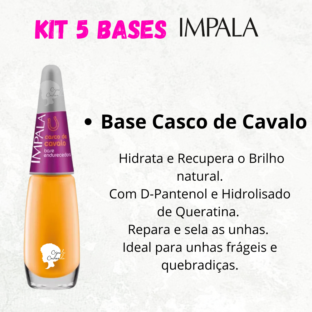 Kit 5 Bases Impala Unhas Força e Crescimento Base Recuperadora Bomba Casco de Cavalo Vitaminada Fortalecedora