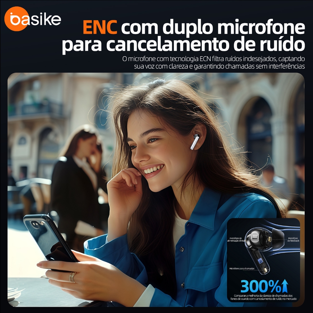 Kinvo & Basike Fones De Ouvido Bluetooth Sem Fio ANC&ENC Fones Com Microfone e Indicador De Bateria