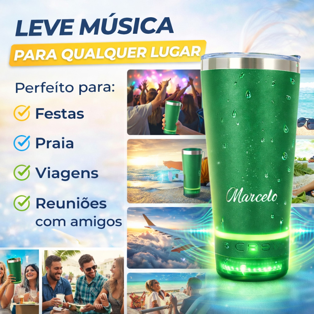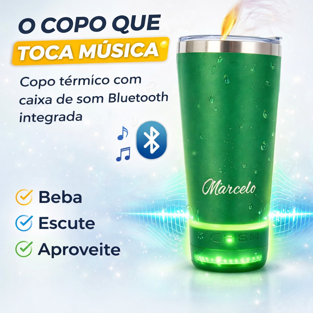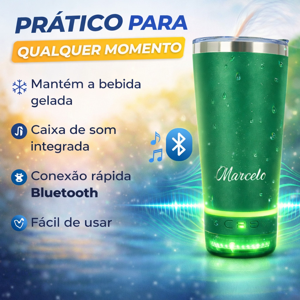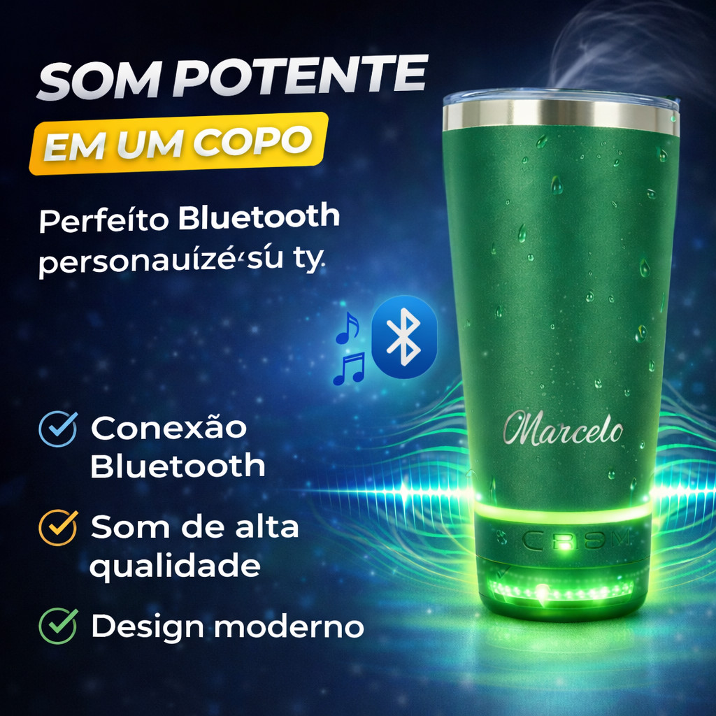 Copo Térmico Com Caixa De Som Personalizado Logo Time Nome Empresa