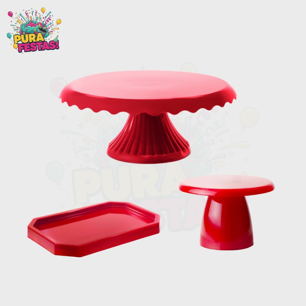 Kit Festa - Boleira Cake Renda 22, 1 Mini Lapidada, 1 Mini Slim - Diversas Cores