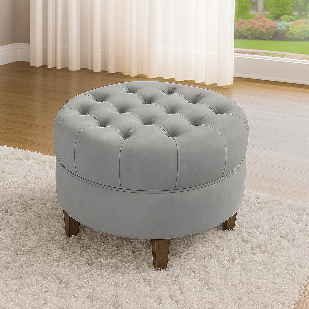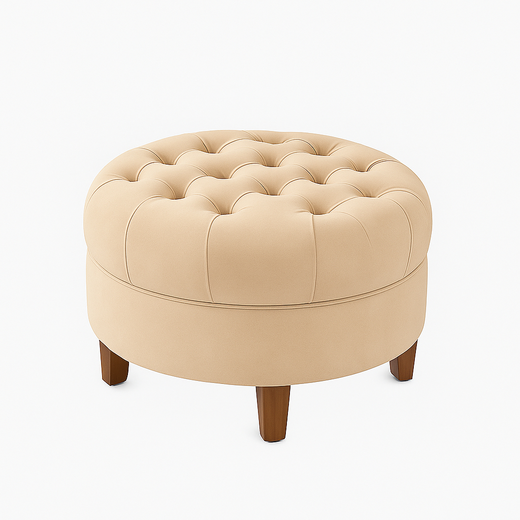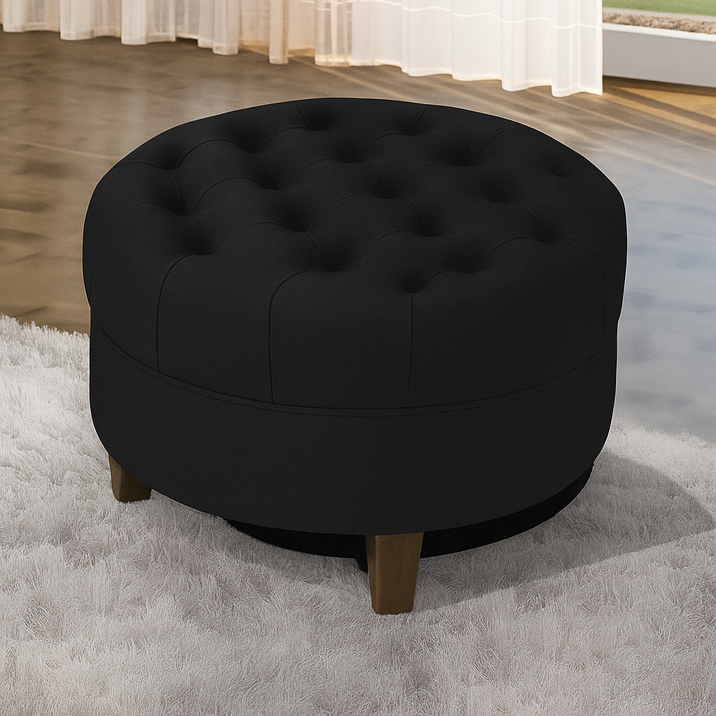 Puff Redondo Estofado Veludo Capitonê Amsterdã Decorativo Moderno Suede Para Sala Estar Quarto - AV