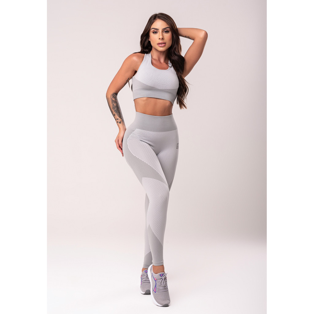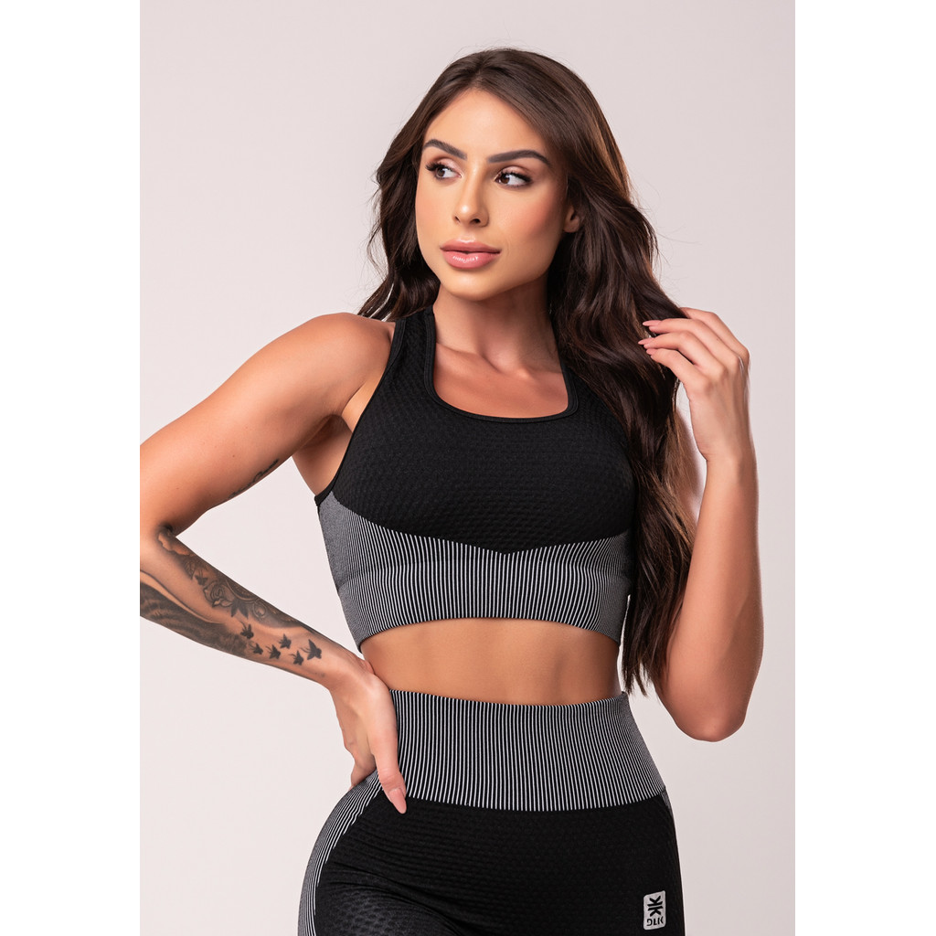 TOP FITNESS FEMININO TEXTURIZADO COM BOJO E ALÇAS CRUZADAS SEAMLESS DLK