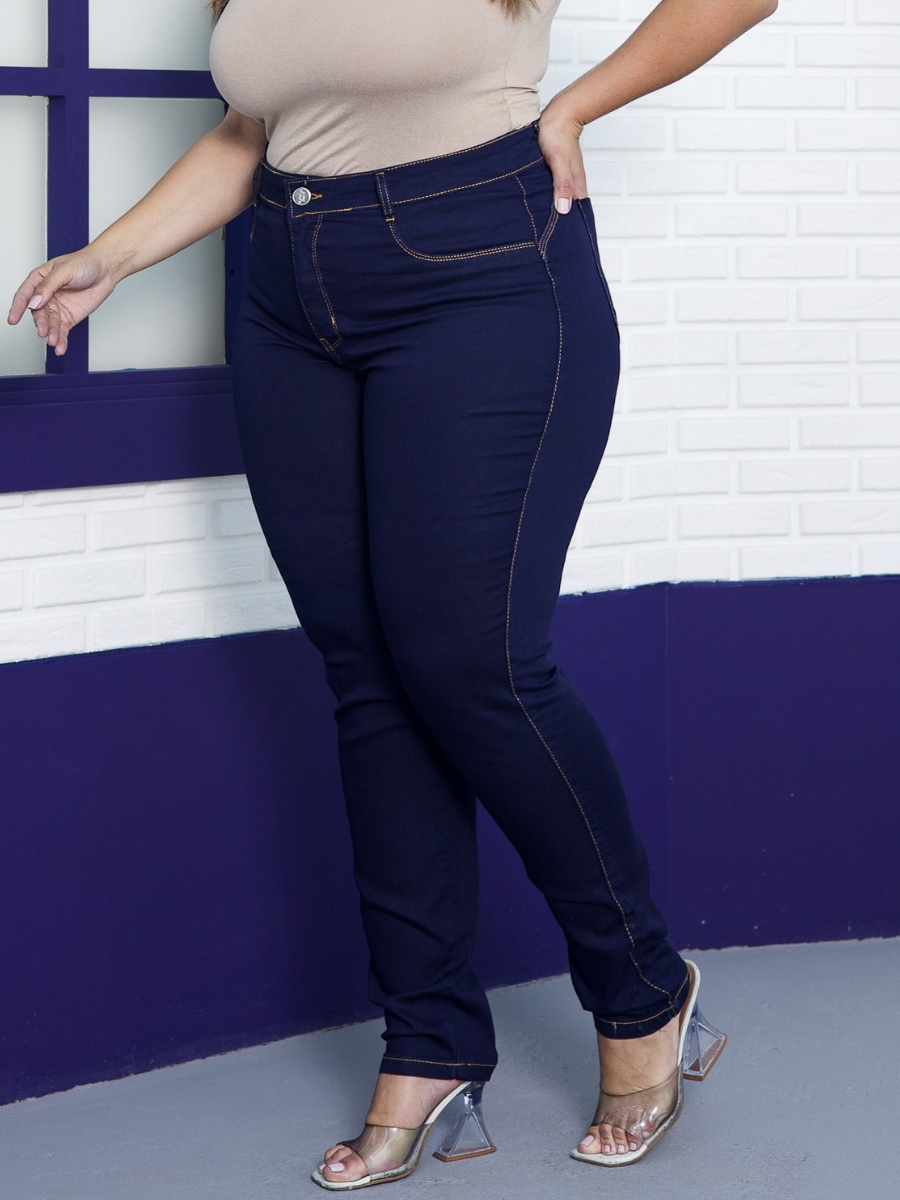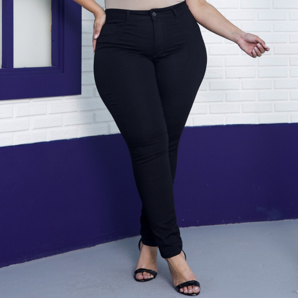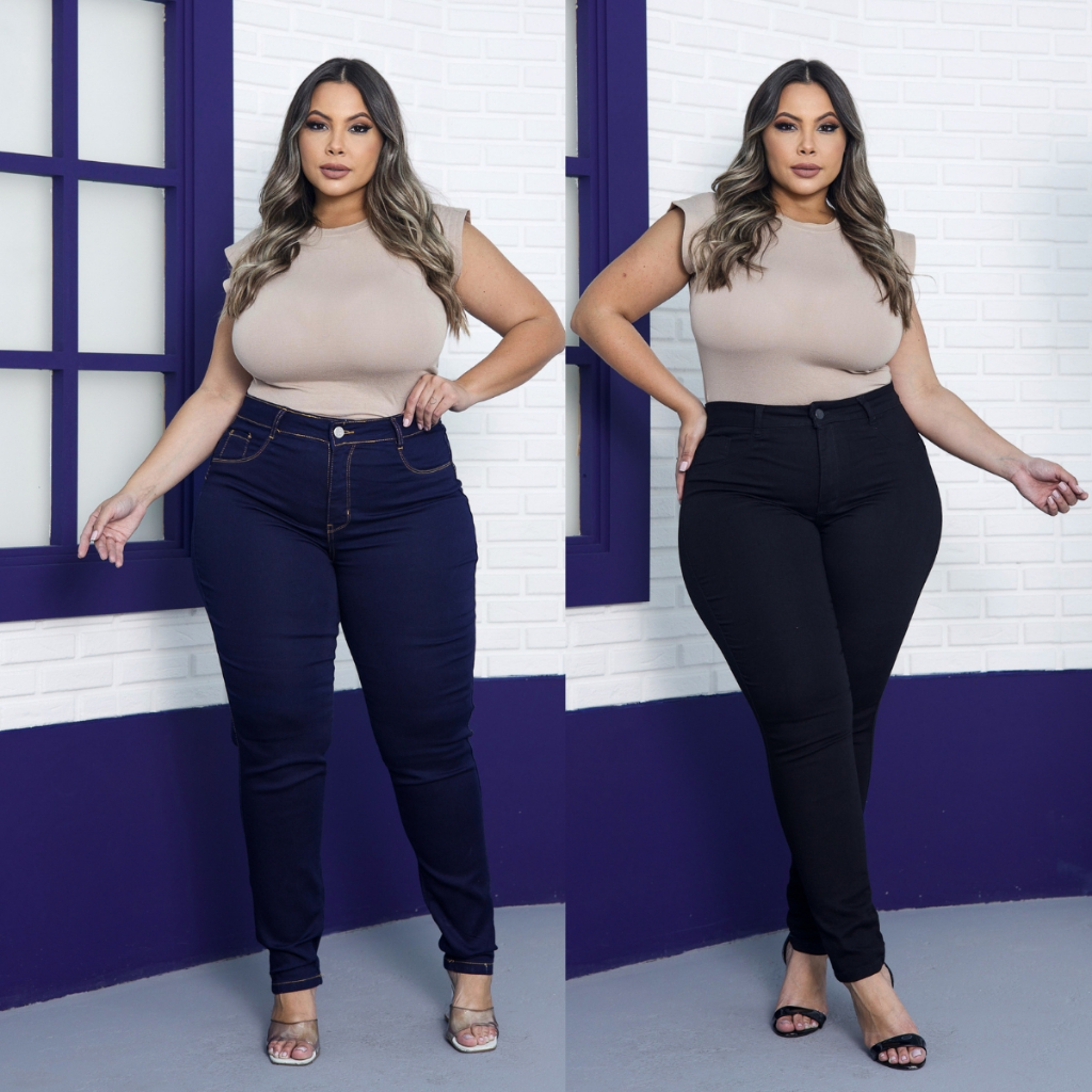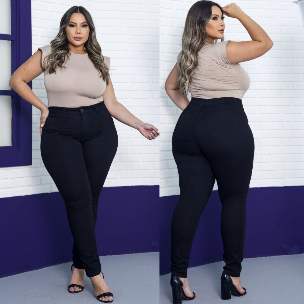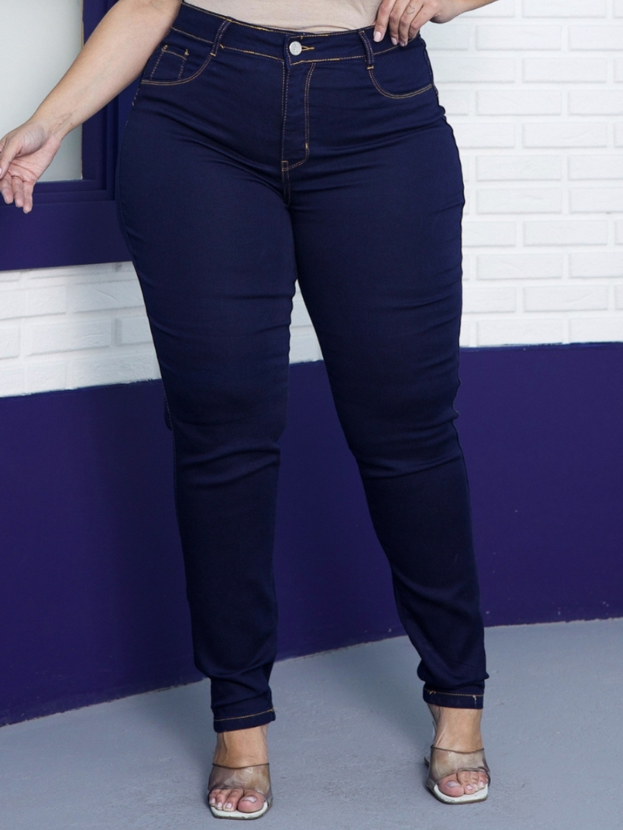 Kit 3 Calças Jeans Plus Size Skinny Feminina Cintura Alta Modelador Corte Justo Confortável Casual