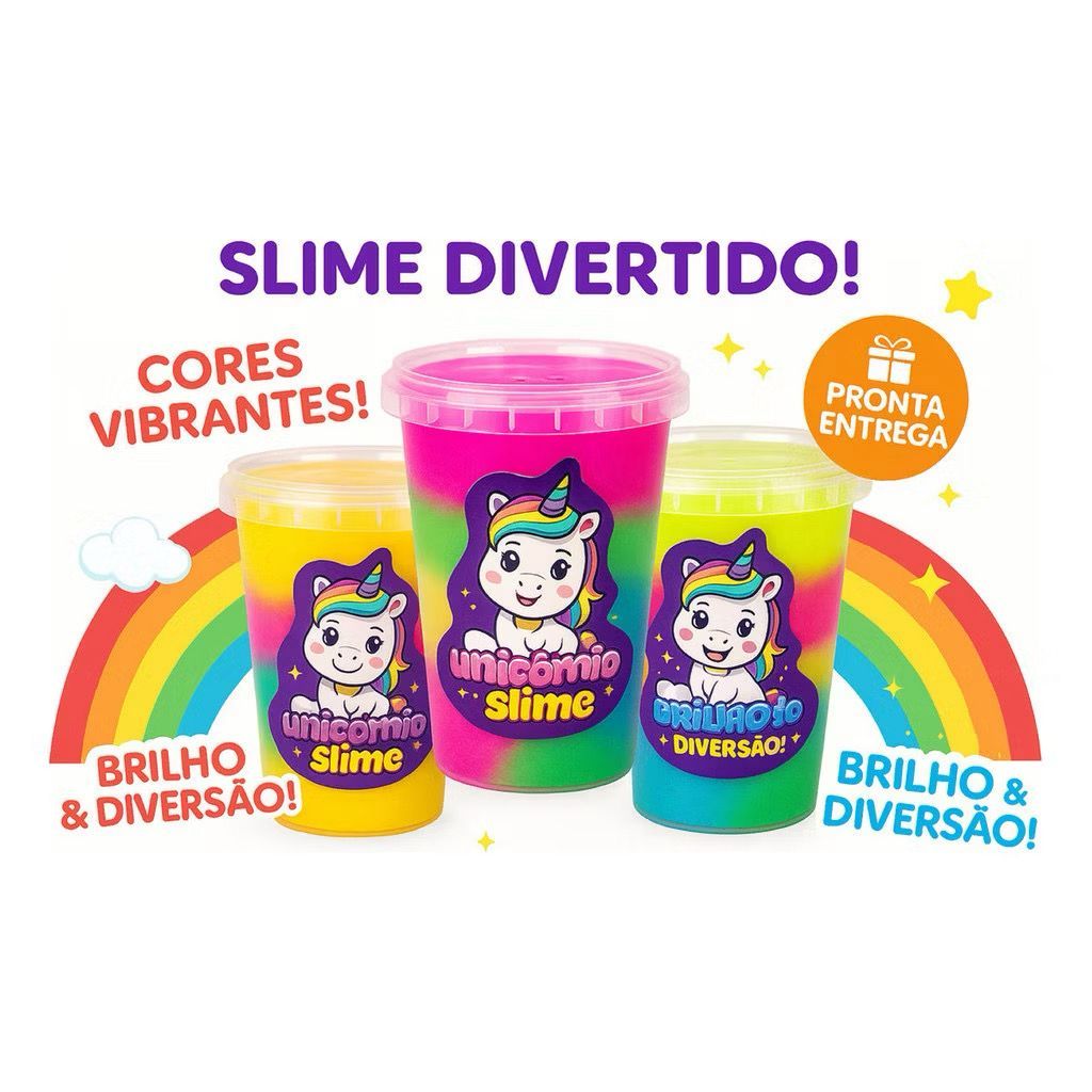 KIT SLIME ARCO IRIS UNICORNIO - BRINQUEDO, LEMBRACINHA, PASCOA, INFANTIL, ENVIO IMEDIATO