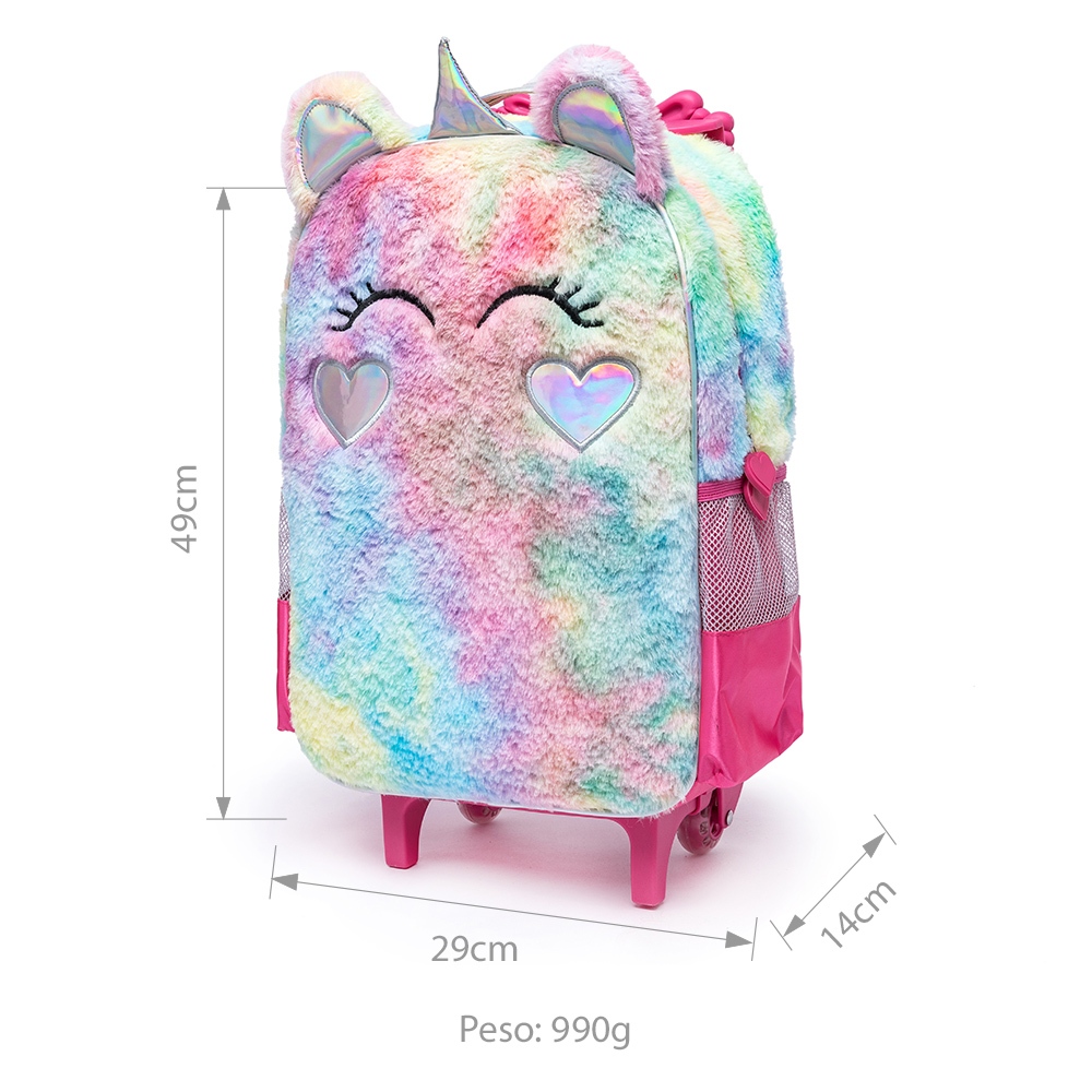 Kit Mochila Lancheira Estojo Spector Feminina Unicórnio Pelúcia