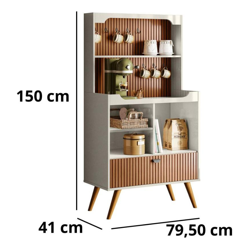 Cantinho Do Café Rubi C/ Efeito Ripado 3d 24h Cor Off White Perolizado/tauari Ripado