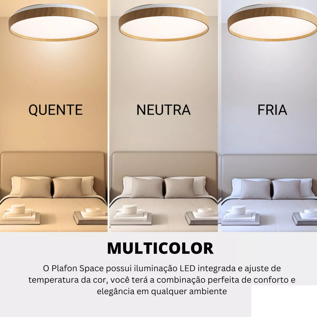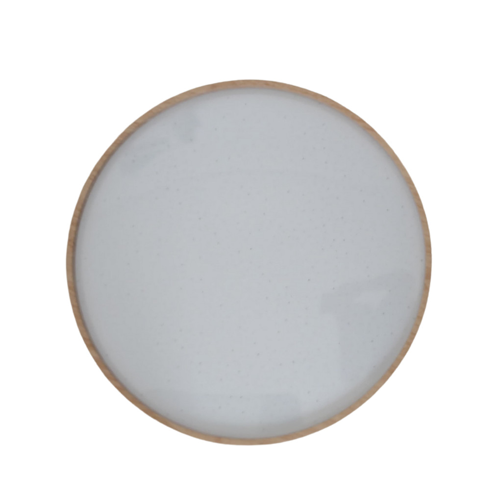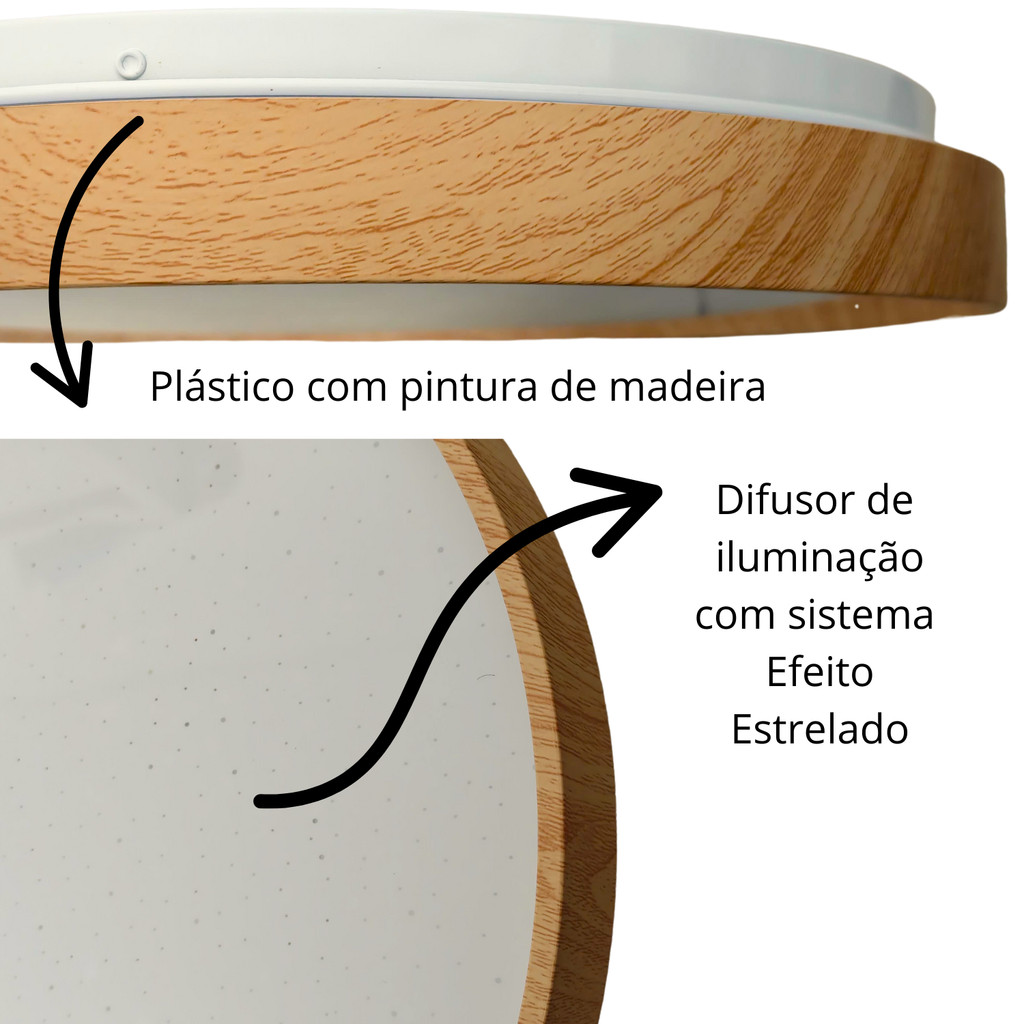 Plafon Luminária Space Madeira 30W 38cm Redondo Sobrepor Efeito Estrelado Led 3 Cores de Luz em 1
