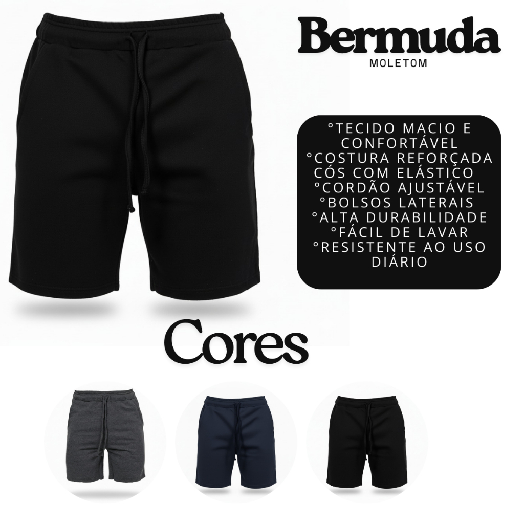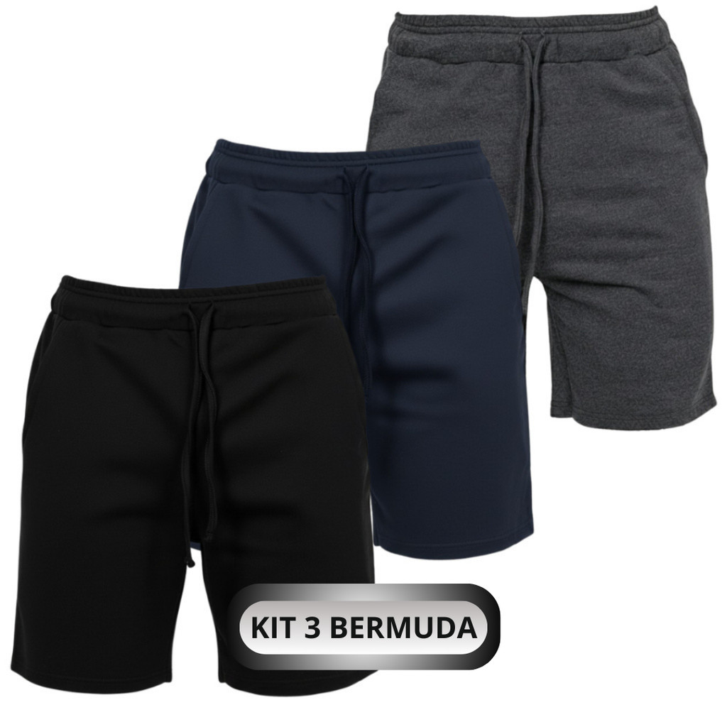 Kit 3 Bermudas Moletom Masculina – Estilo Urbano e Confortável