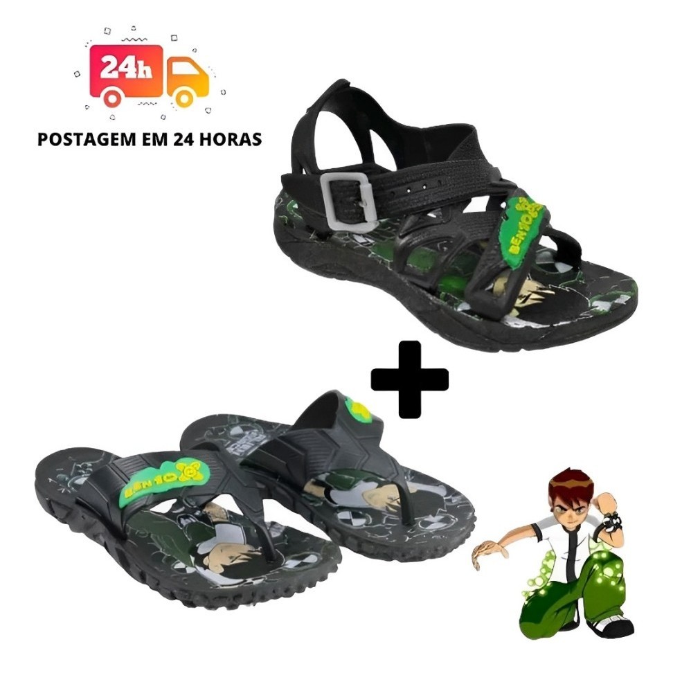 KIT 2 PARES Chinelo + Sandália Infantil Homem Aranha, Capitão América, Ben 10, Hot Whells