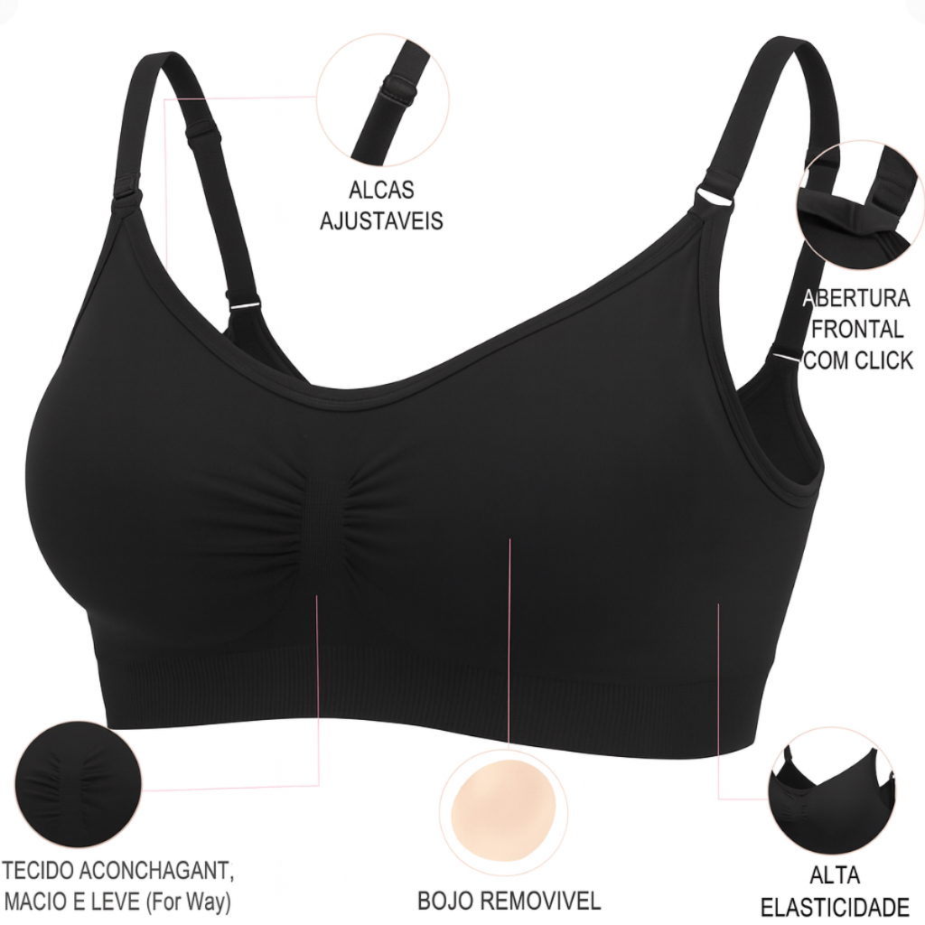 Kit 2 Top Sutiã Sensual Com Alça E Fecho Ajustável Premium liso