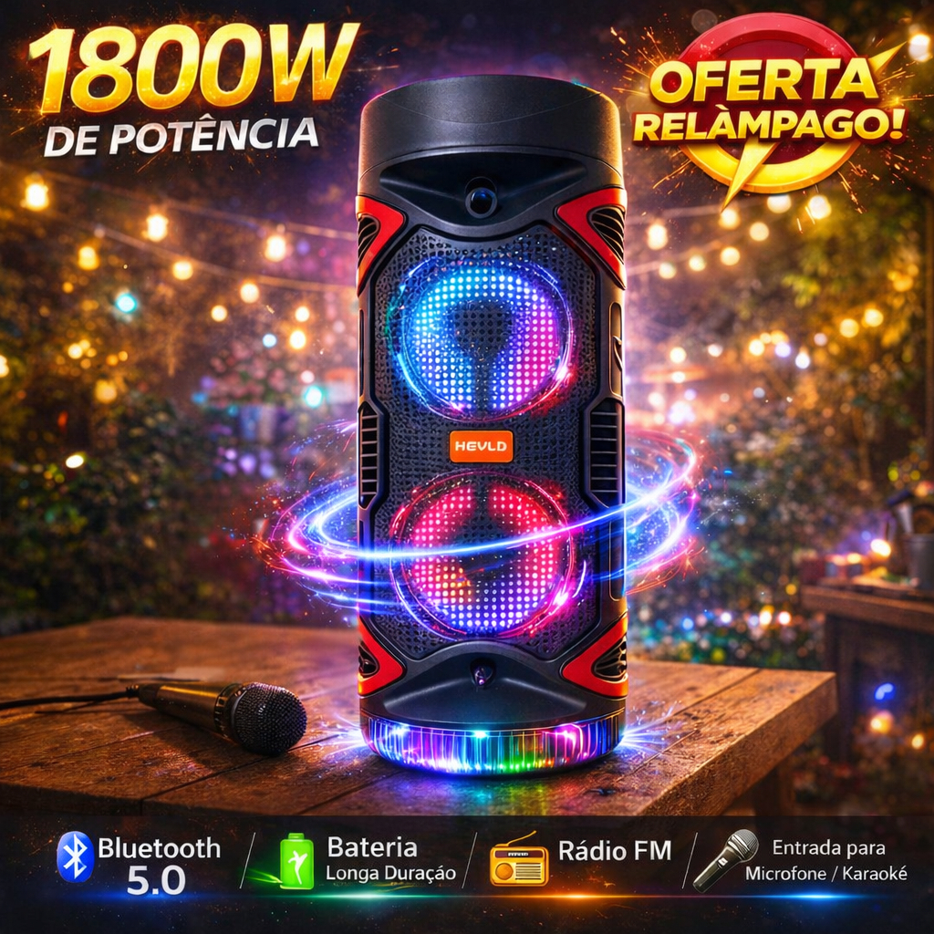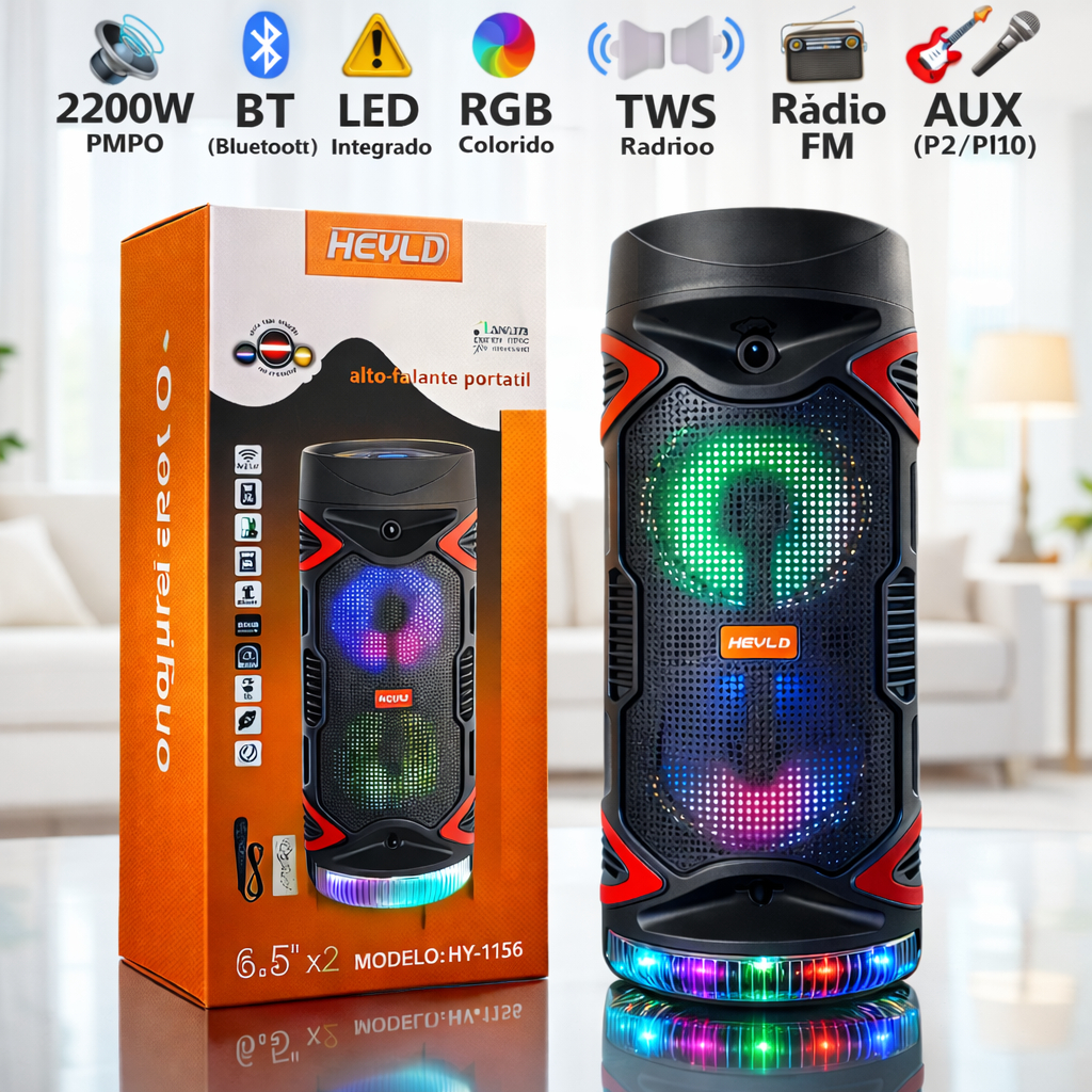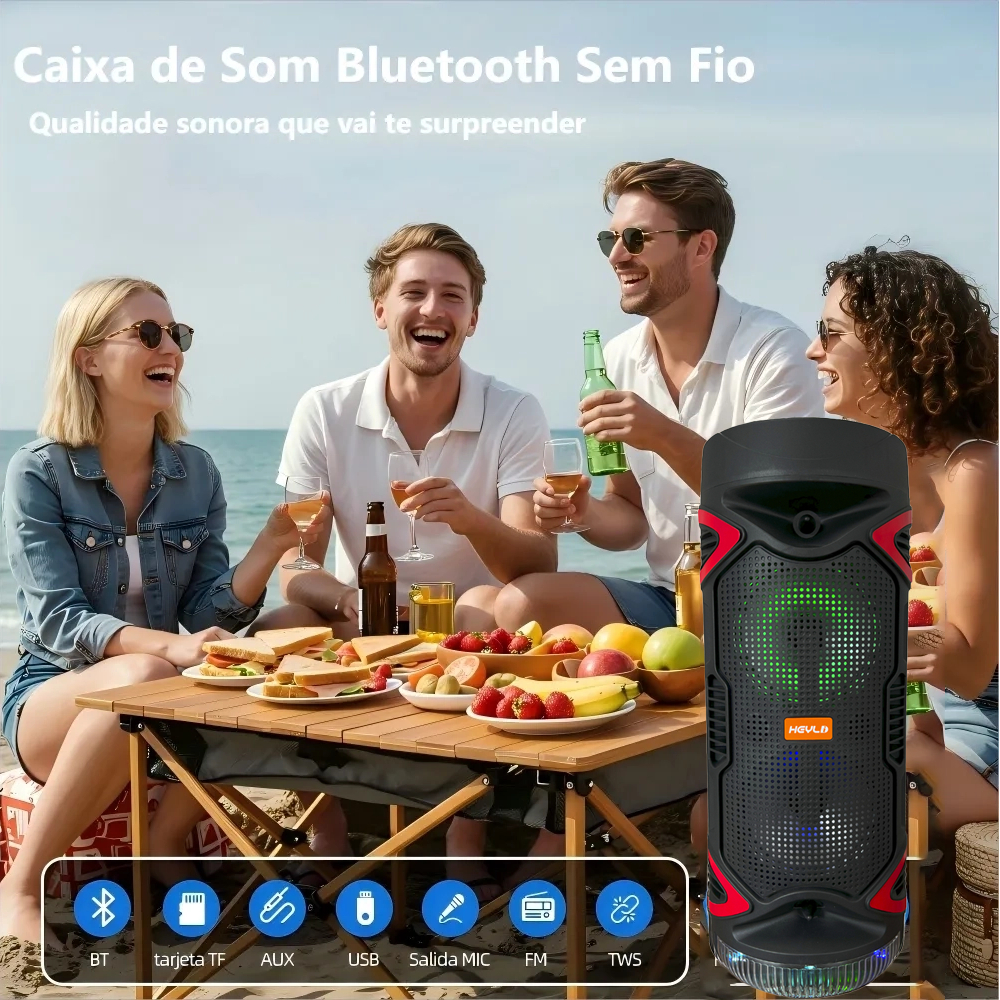 Caixa De Som Bluetooth Portátil Potente Falantes 2x 6,5" 200W FM LED RGB Festa Viagem Praia Piscina