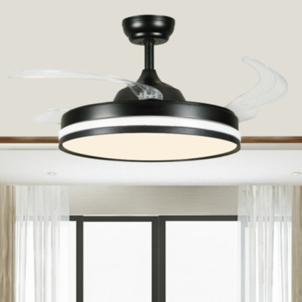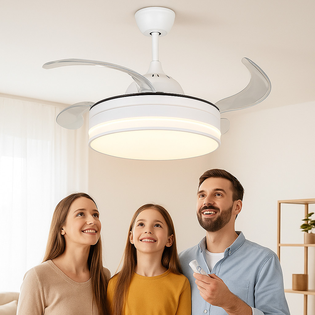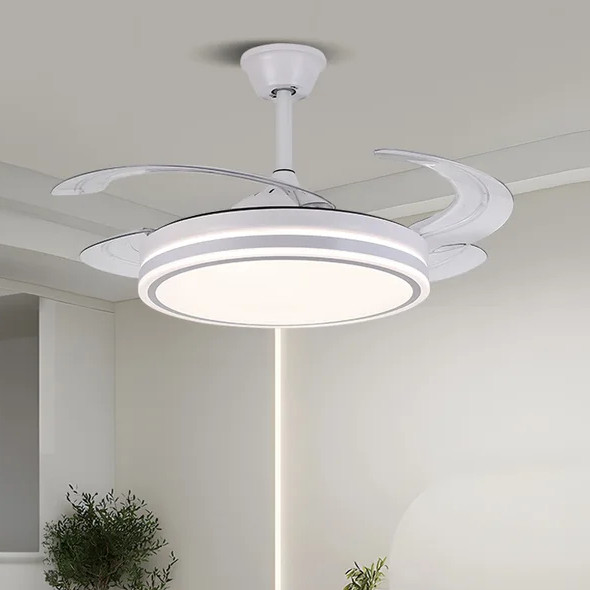 Ventilador de Teto com Lustre 4 Pás Retrátil LED Multicolor Controle Remoto Bivolt