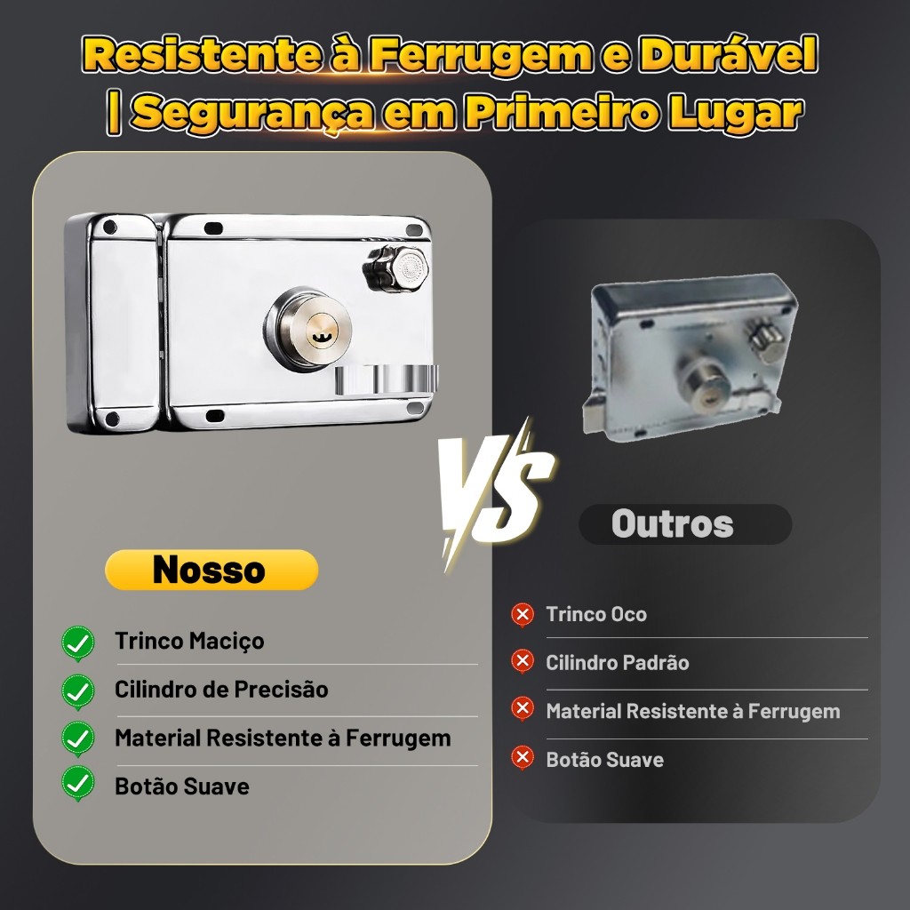 Fechadura Sobrepor cor cromada para Portão e Porta Com TRAVA DUPLA e 05 CÓPIA DE CHAVES