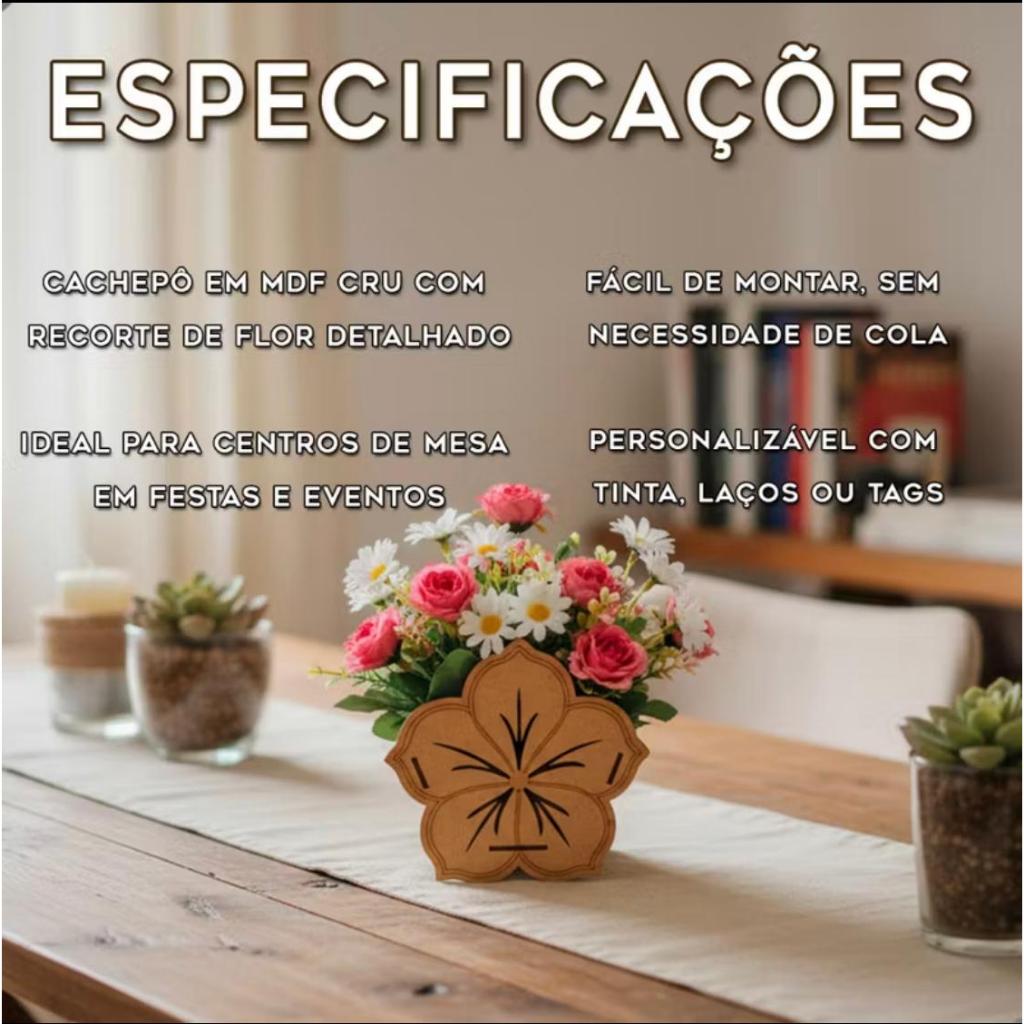 Cachepô Centro de Mesa Flor MDF Cru Decoração de Festas Aniversário Casamento Lembrancinha