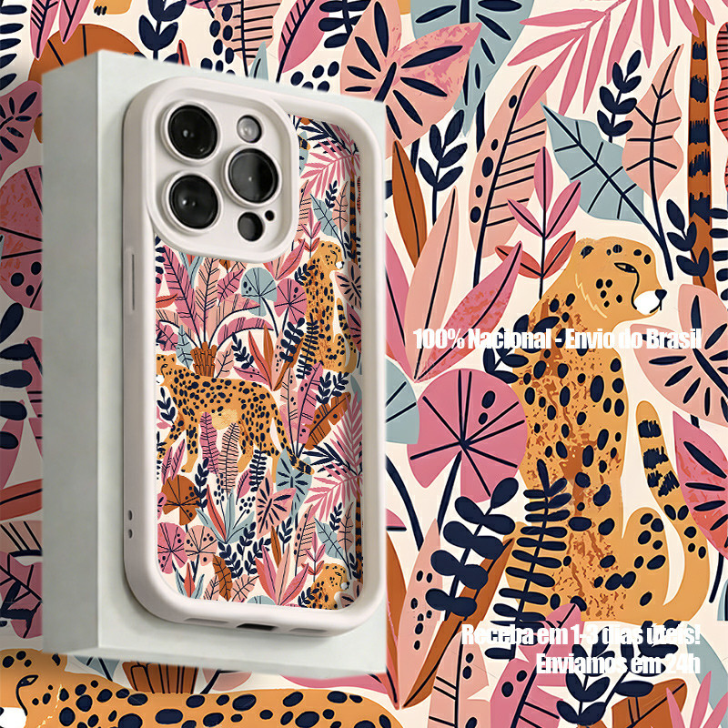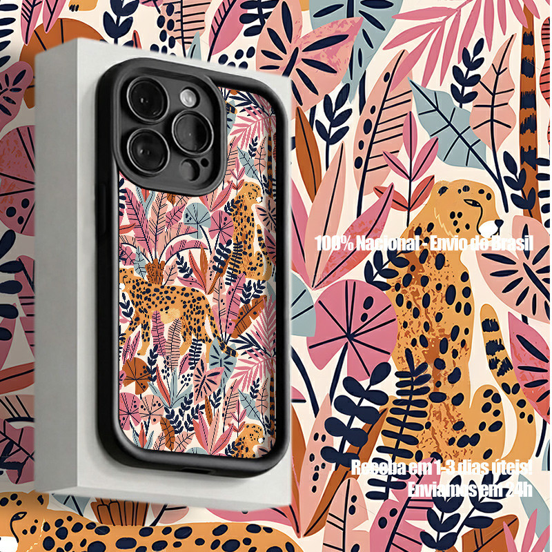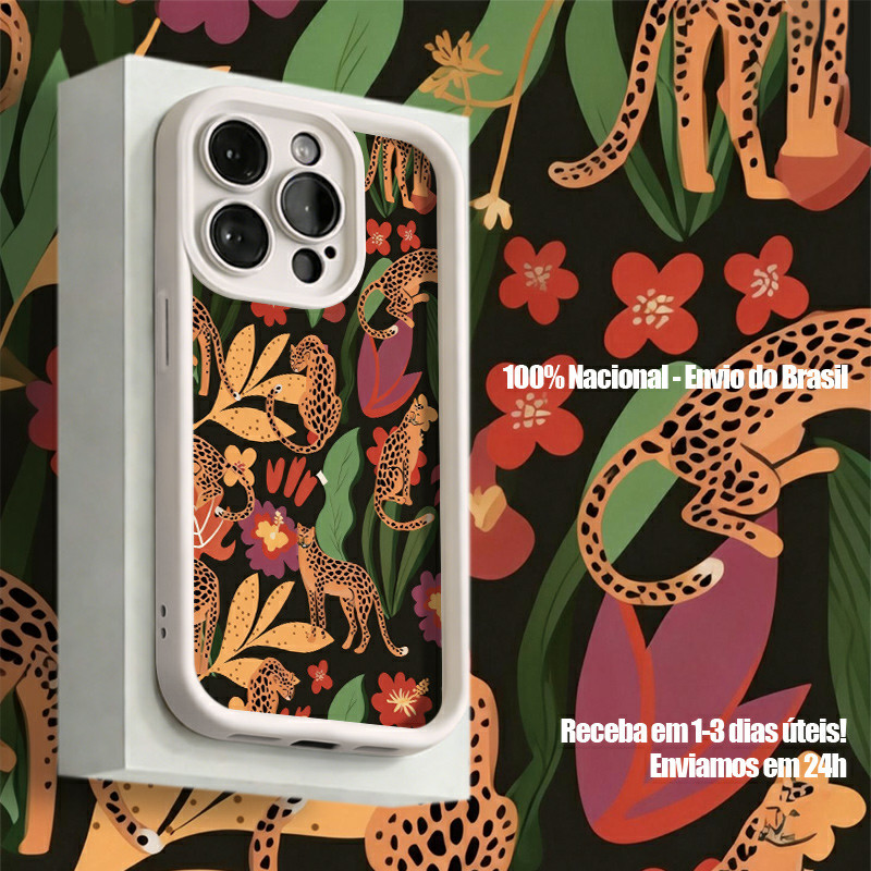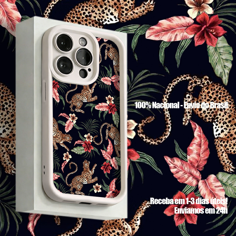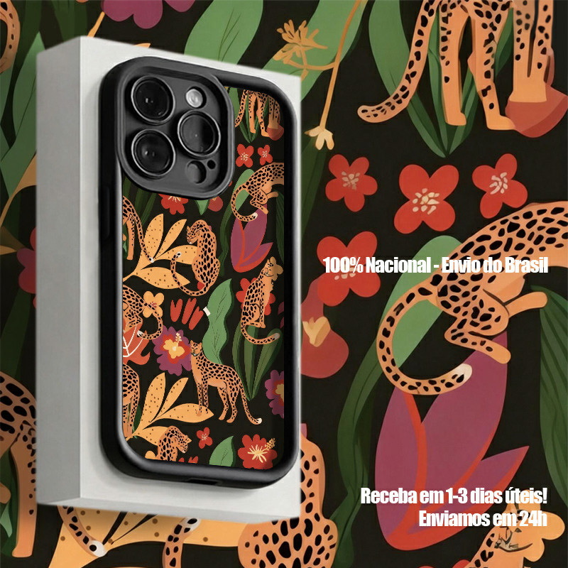 Capinha Para iPhone XR 11 12 13 14 15 16 17 PRO MAX 14 15 16 PLUS Silicone À Prova de Choque Tigres e leopardos