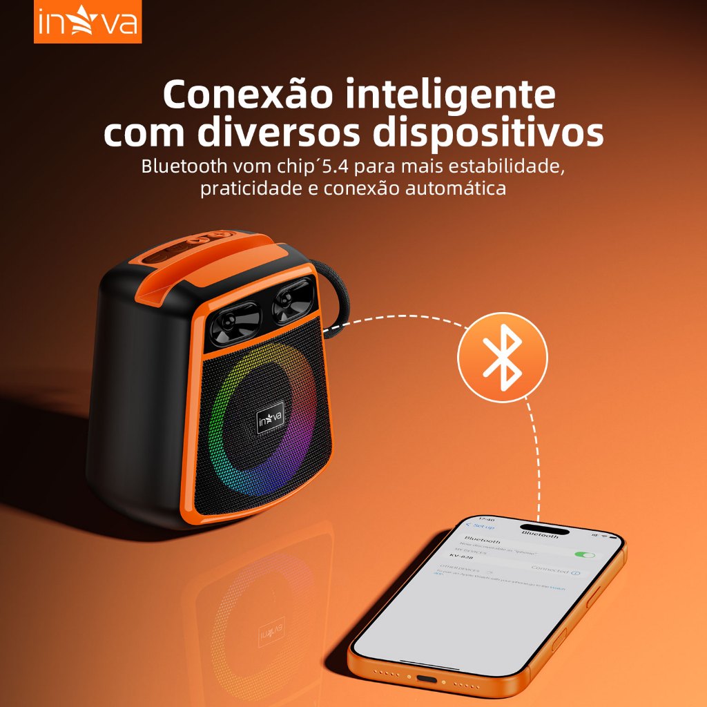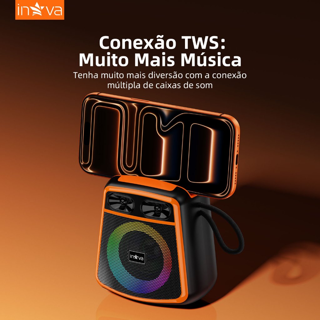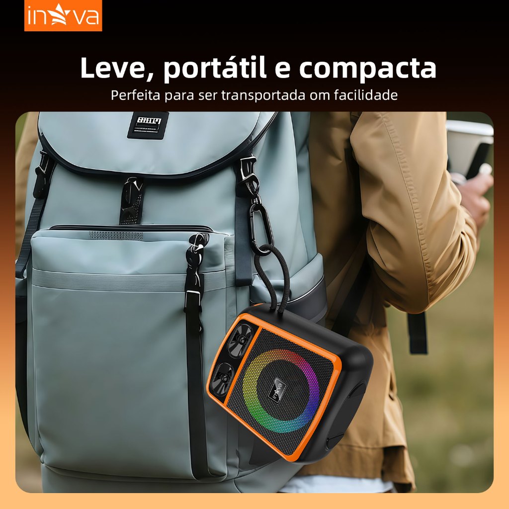 Inova Caixa de Som TWS(10W)— Ideal Para Festas, • Com Rádio FM, Luz LED + Áudio HiFi + BT V5.4